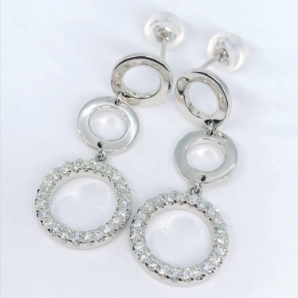 ゆらゆらと揺れ動くサークルモチーフに無色透明系のテリの良い上質なダイヤモンドを合計0.40ctセッティングしたベリテの上品なピアスです。