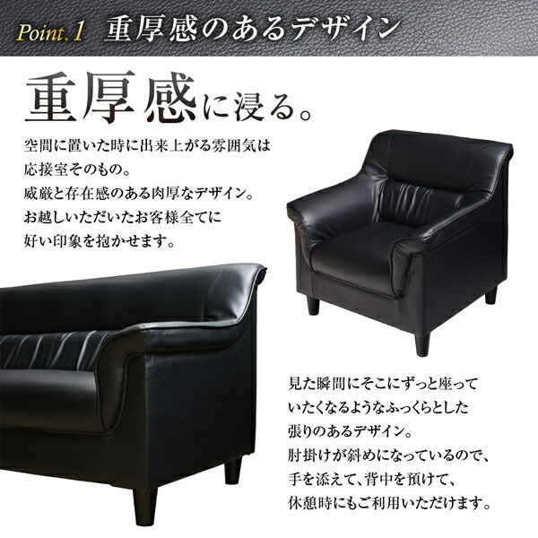 条件や目的に応じて選べる 重厚デザイン応接ソファセット Office Road オフィスロード ソファ2点&テーブル 3点セット 1P+2P【ソファカラー:ブラック】です。