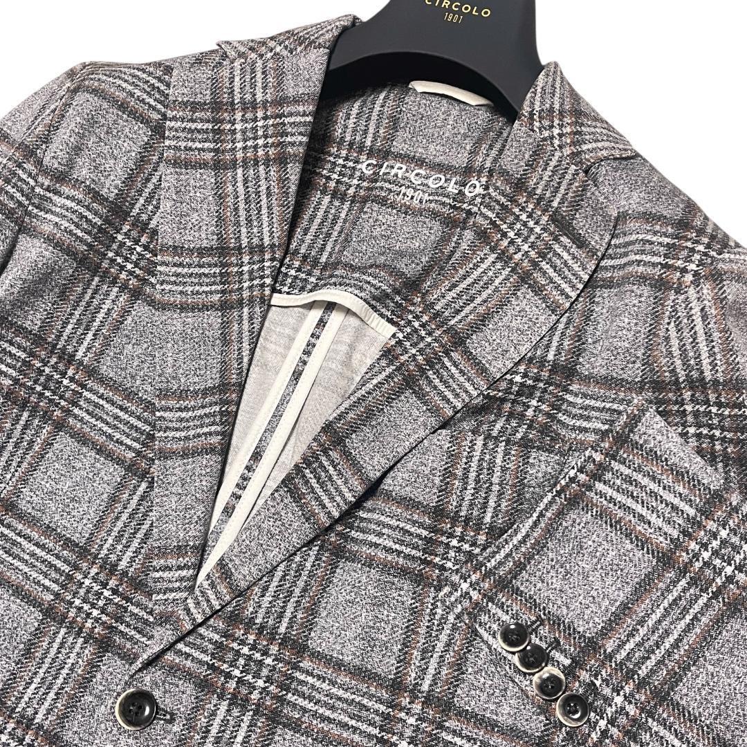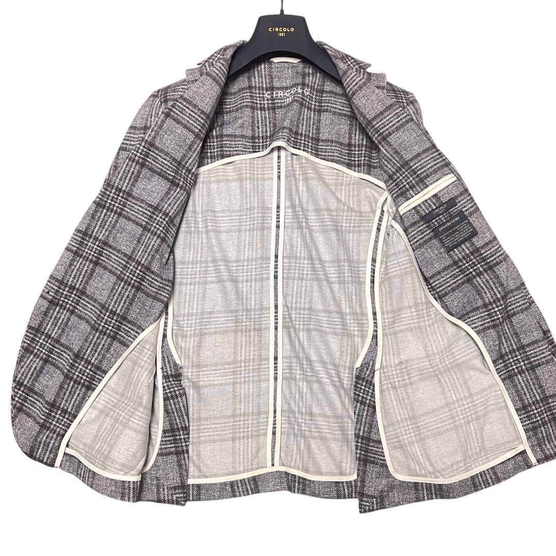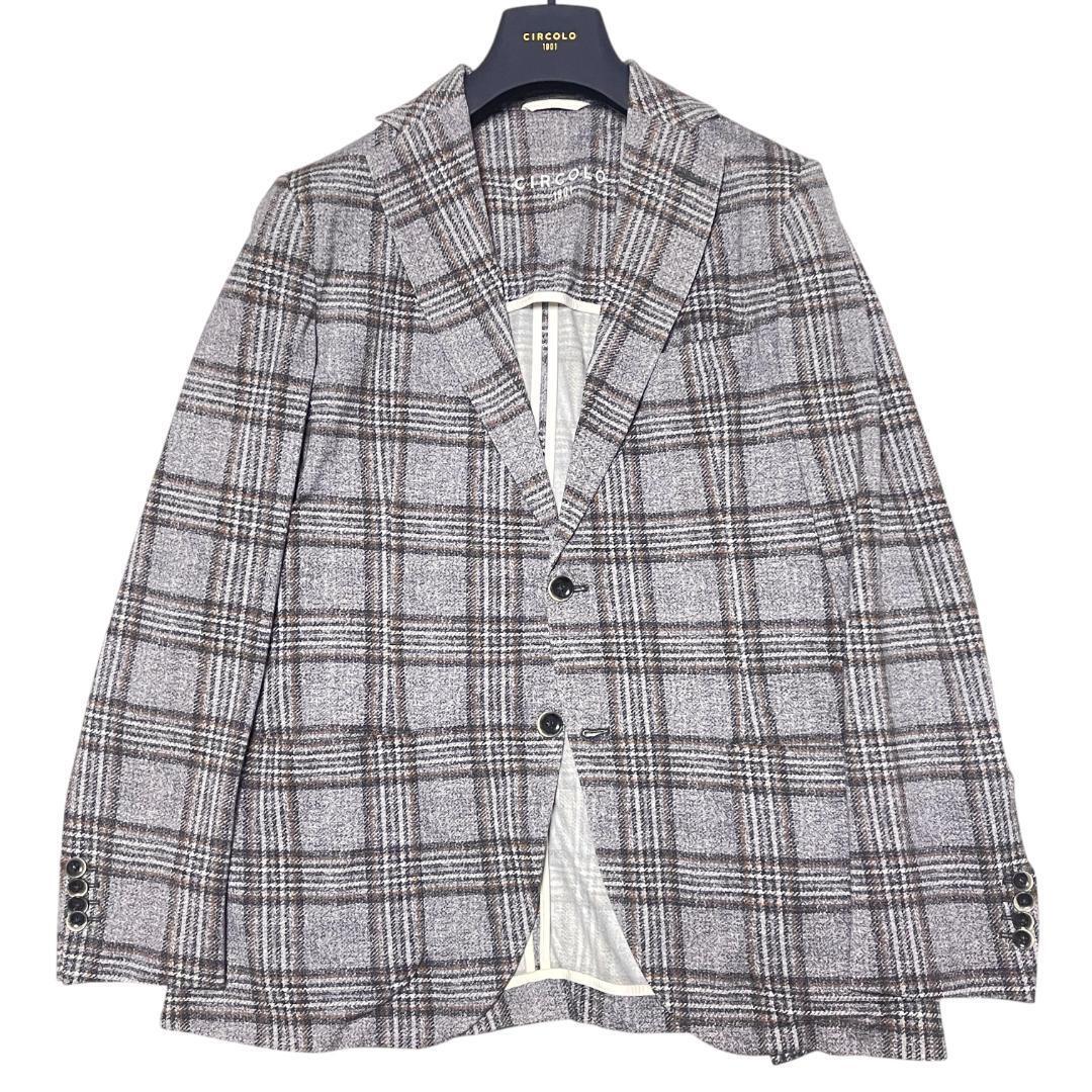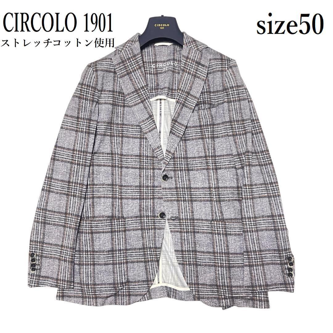 【美品◆春夏】CIRCOLO 1901 チルコロ テーラードジャケット ストレッチコットン 50 L XL グレンチェック グレー 茶 ブラウン