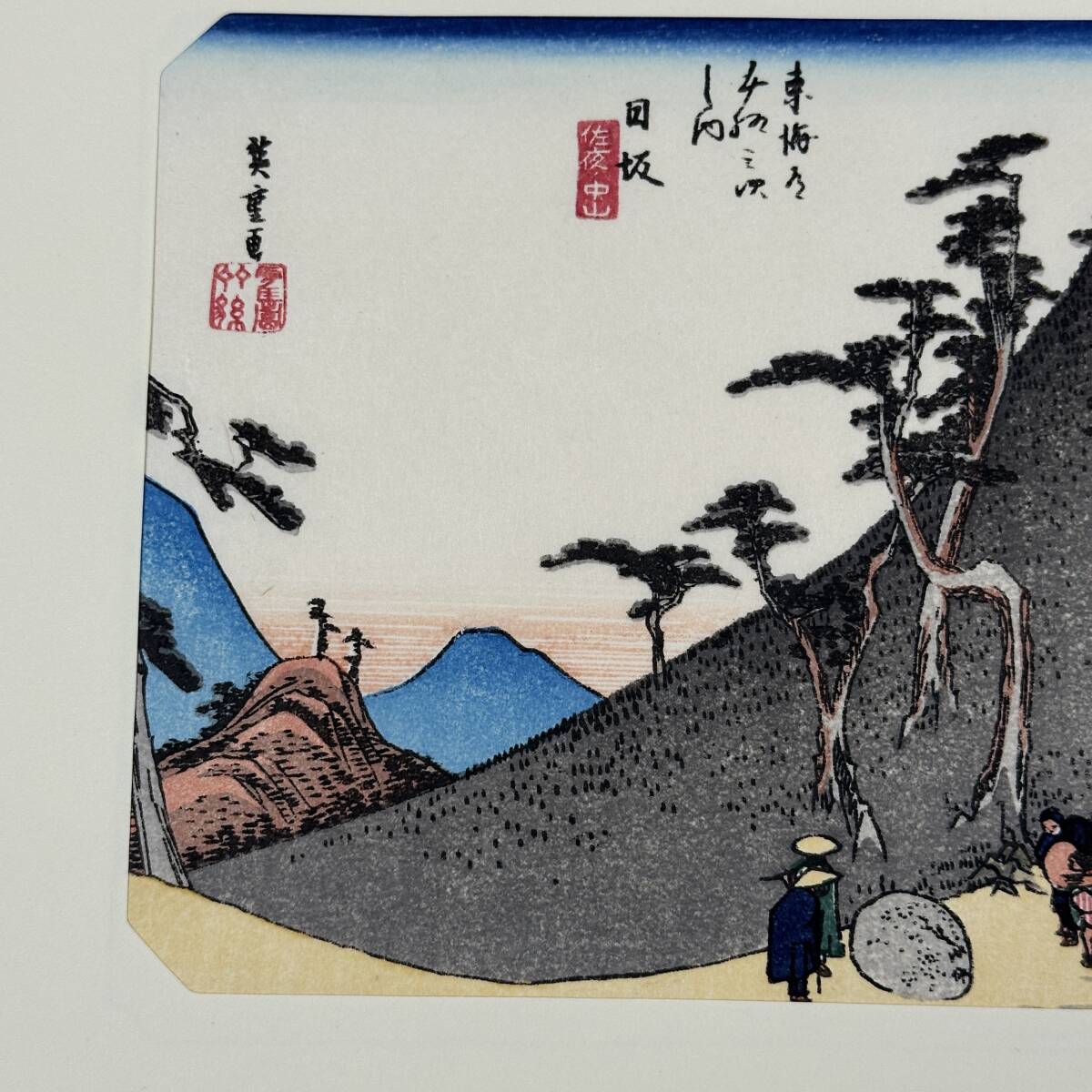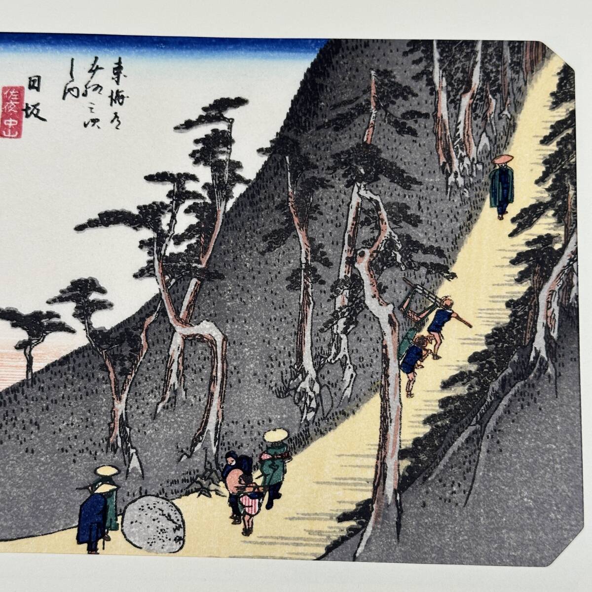 商品名:【真作】歌川広重「東海道五十三次 日坂」木版画 浮世絵 作品サイズ 25.5cmx17.5cm 保永堂版