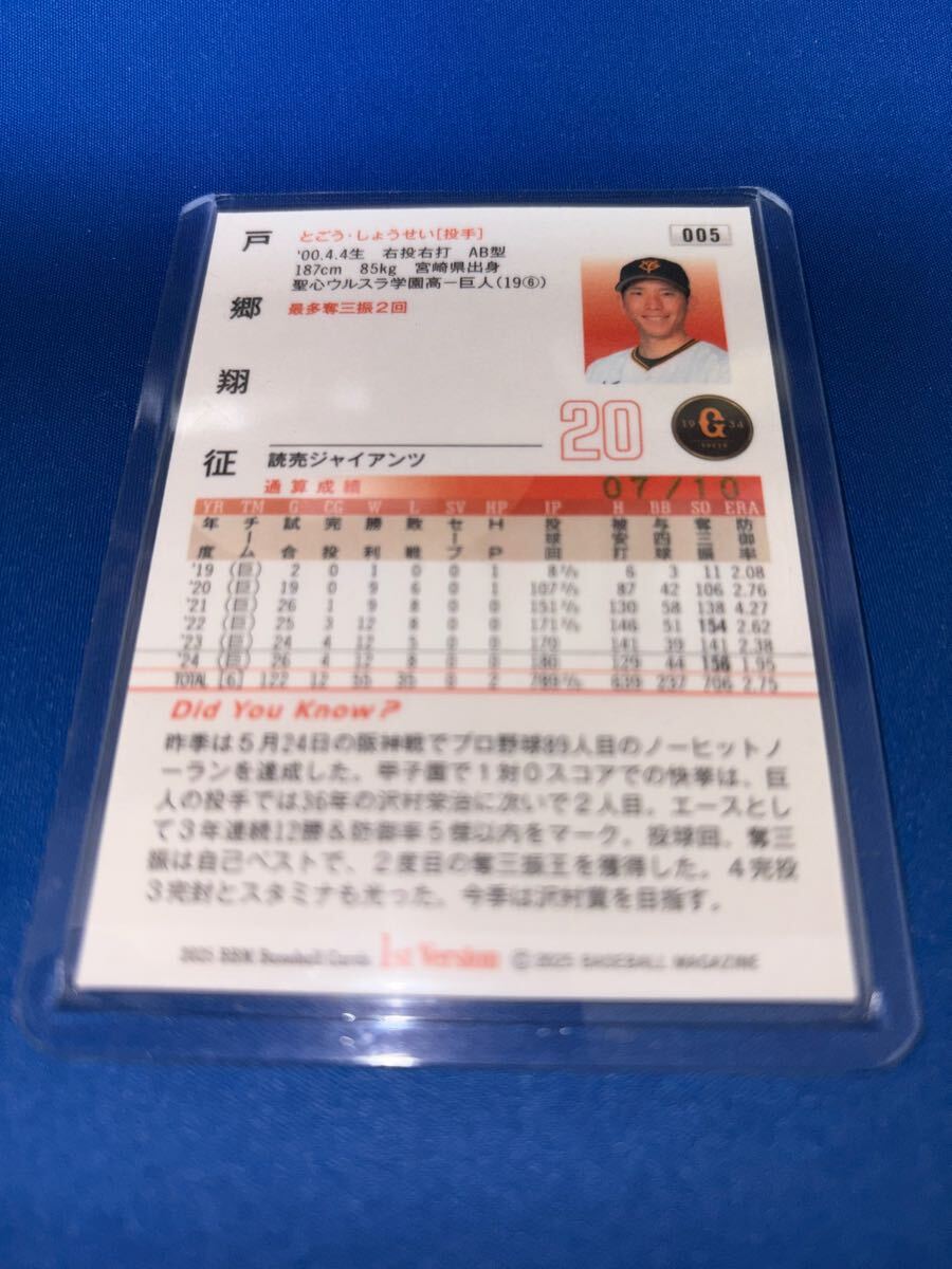 BBMベースボールカード 1stバージョン 2025 10枚限定パープル箔サインカード 読売ジャイアンツ 巨人 戸郷翔征