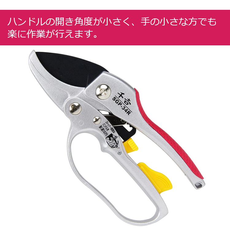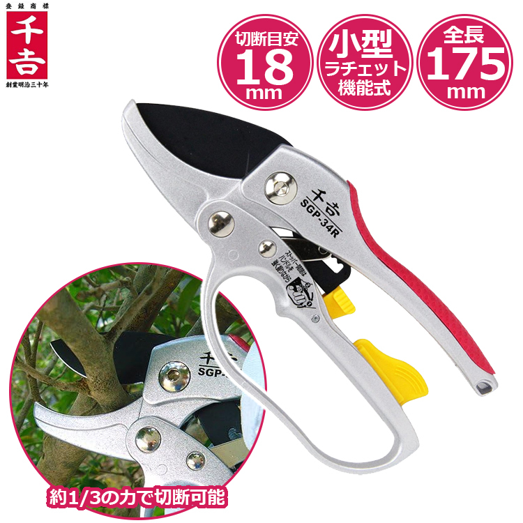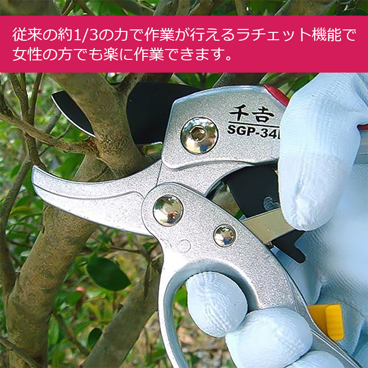 千吉 剪定ばさみ SGP-34R ラチェット式 剪定鋏 剪定バサミ 剪定はさみ 枝切りバサミ