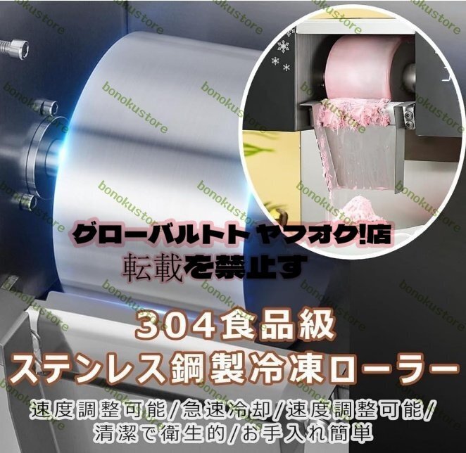 【スピード調整】ステンレス製の冷凍ローラー、回転速度を調整し、異なる厚さの原料を使用することで、さまざまな形の雪の結晶を作ることができます。