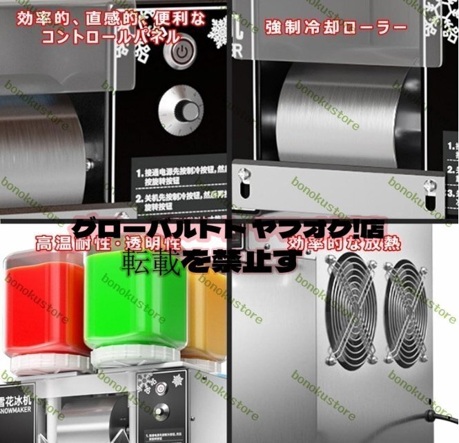 かき氷機 業務用 電動 アイスクラッシャー 3秒で氷が出 単一/混合色製作可能 かき氷メーカー 氷粉砕機 速度調整可能 回転トレイ 低騒音 家庭用製氷機 かき氷器 110V 304ステンレス鋼 喫茶店 飲食店用ふわふわ氷 124FD-混合色製作