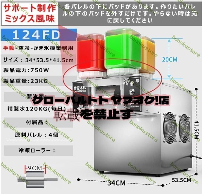かき氷機 業務用 電動 アイスクラッシャー 3秒で氷が出 かき氷メーカー 氷粉砕機 速度調整可能 回転トレイ 110V 124FD-混合色製作