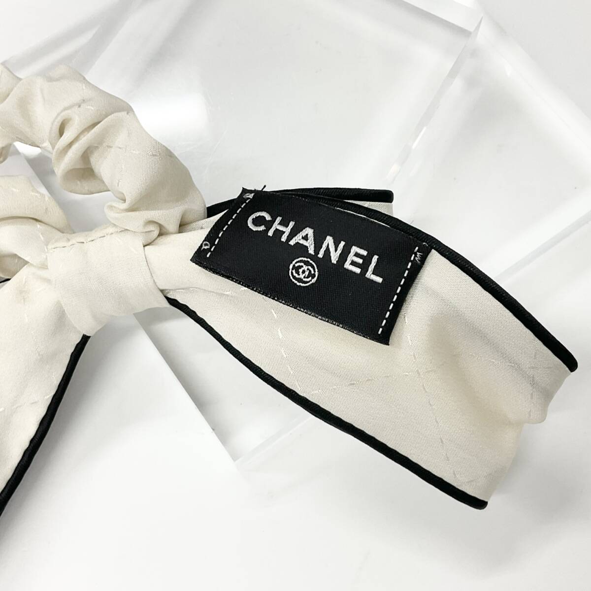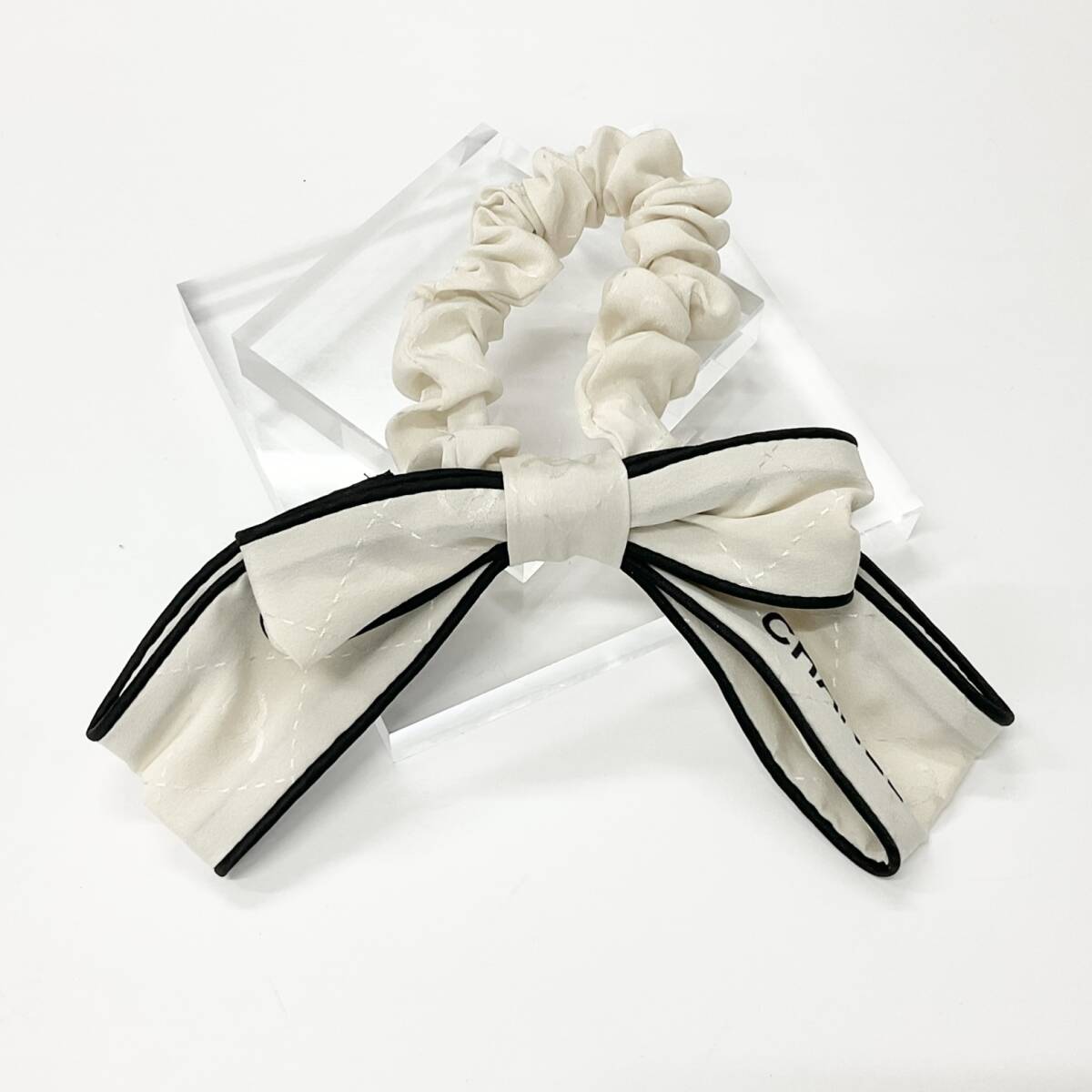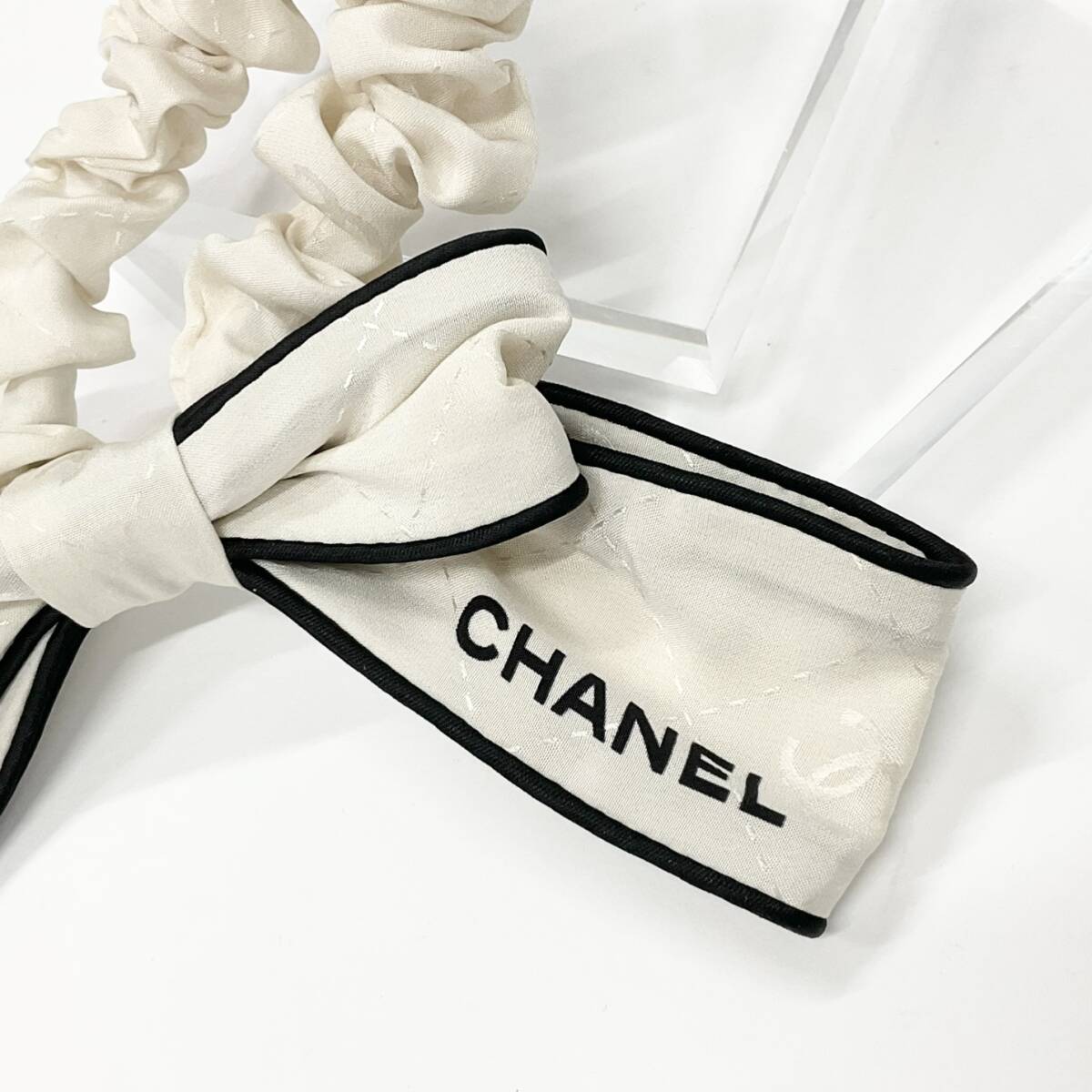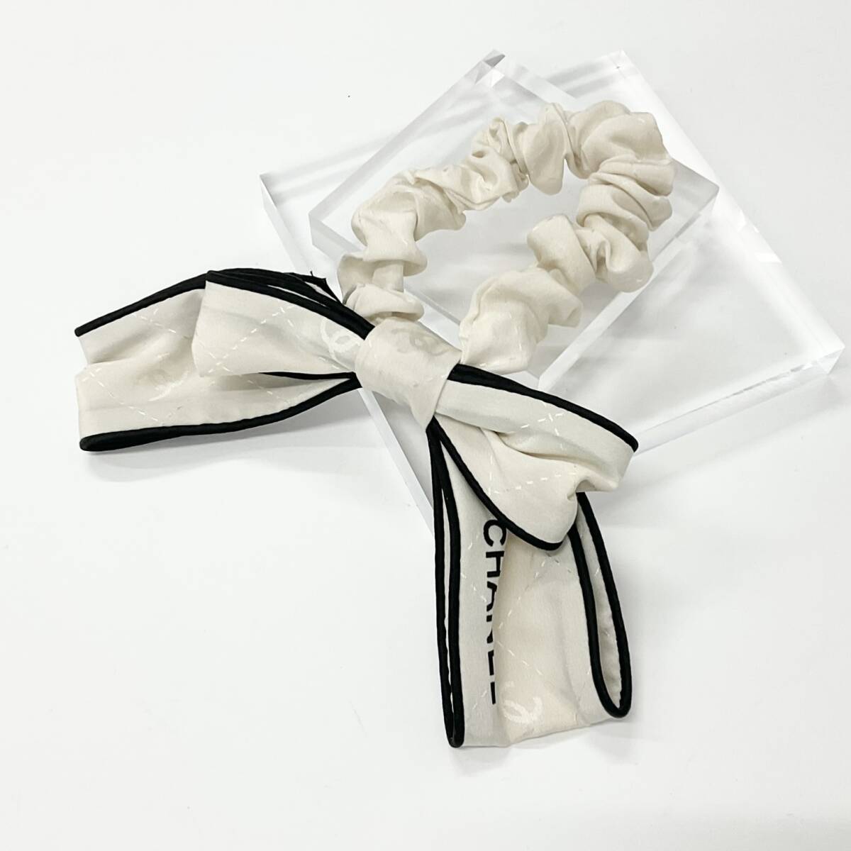 シャネル ココマーク ロゴ リボン シルク シュシュ ヘアゴム ホワイト ブラック