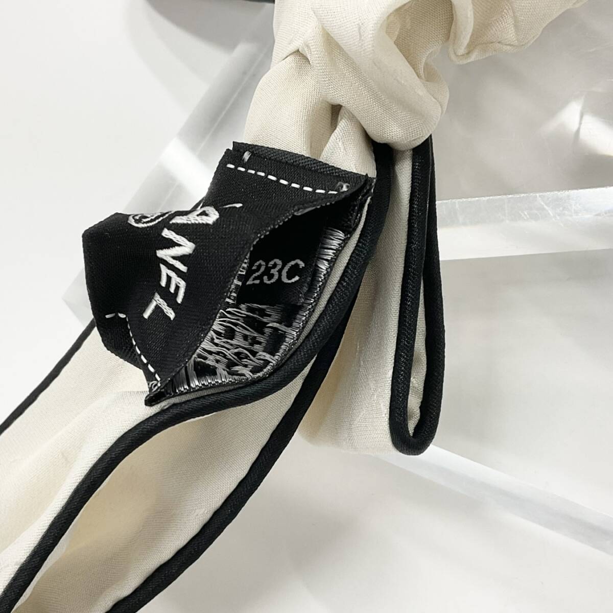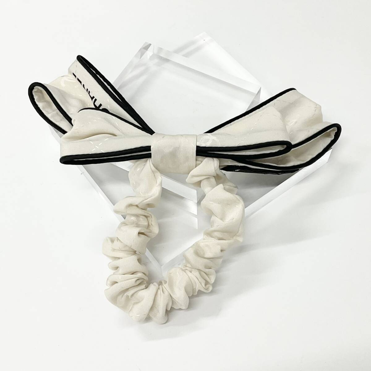 M11956 シャネル ココマーク ロゴ リボン シルク シュシュ ヘアゴム ホワイト ブラック