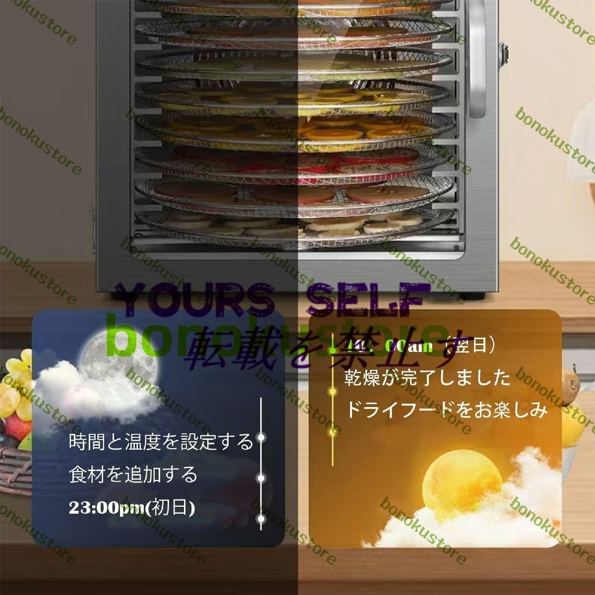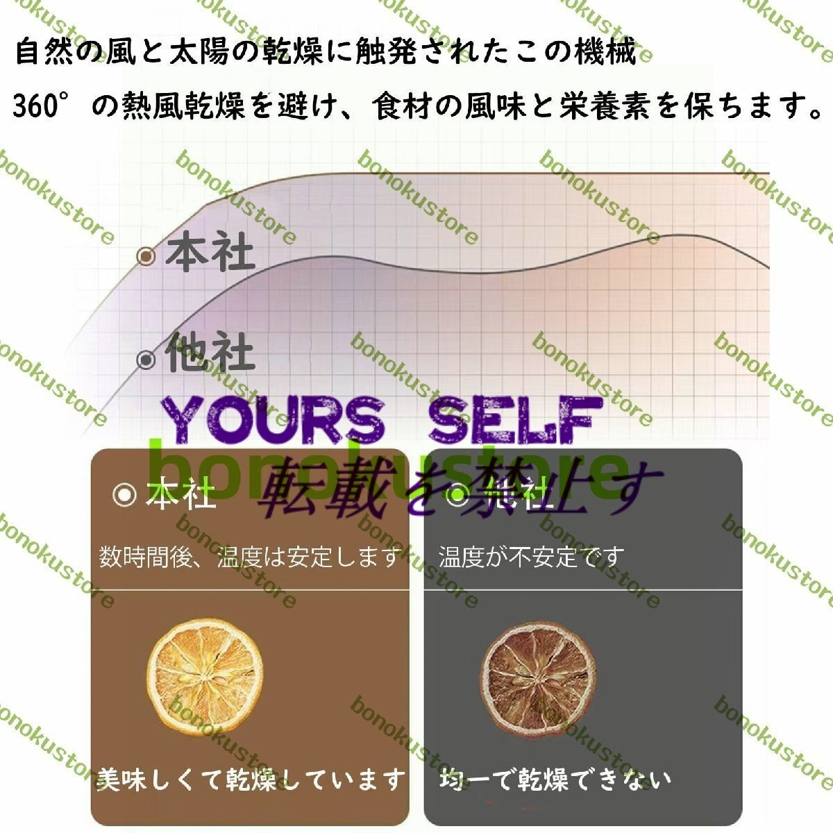 商品説明 【16トレイ回転式フードドライヤー】この食品乾燥機は、乾燥効率を50%向上させる独自の360°自動回転デザインを備えており、均一な熱分布を実現しています。デュアルファン、大きなU字型加熱要素、サイクロン気流システムを特徴としており、最適な食品の安定性を確