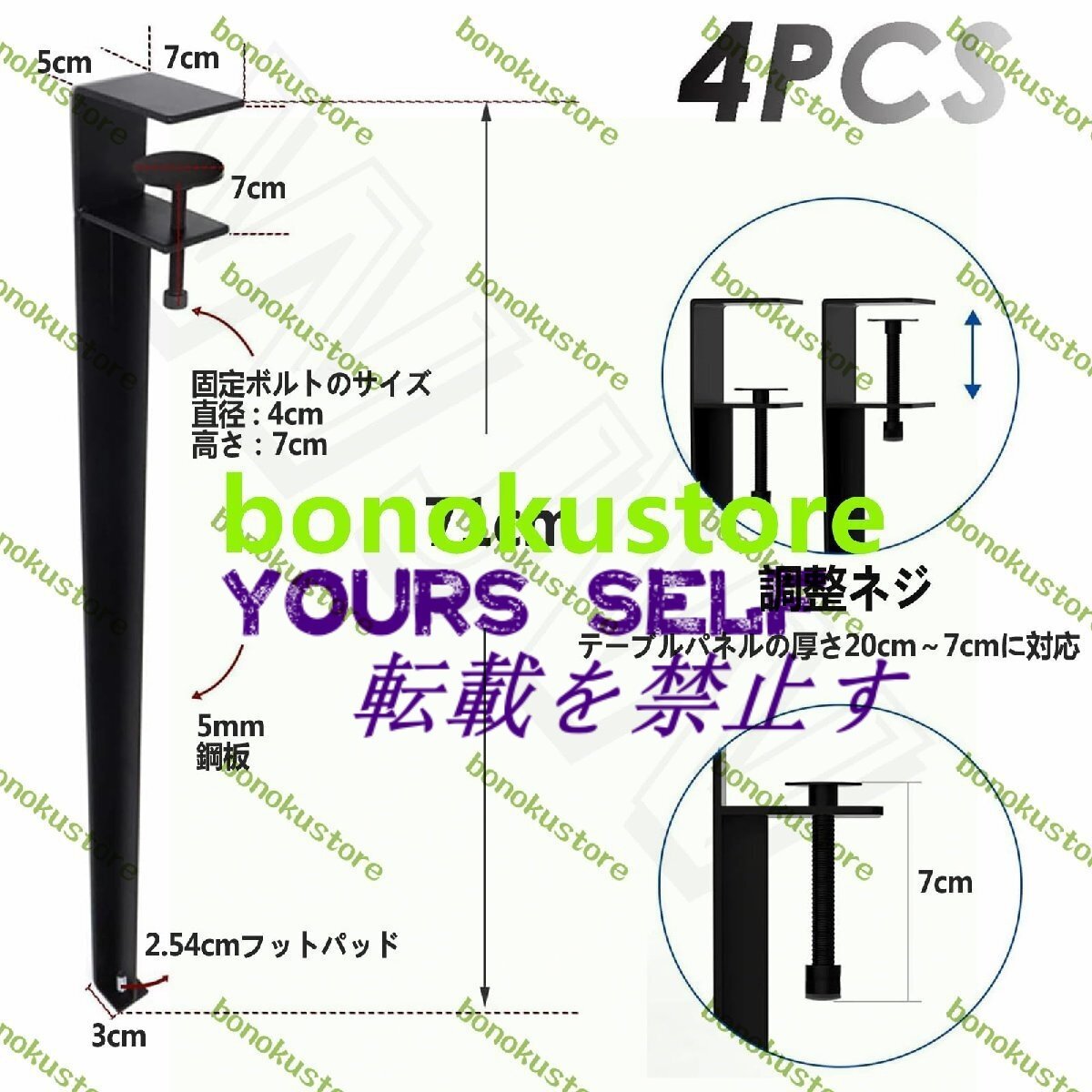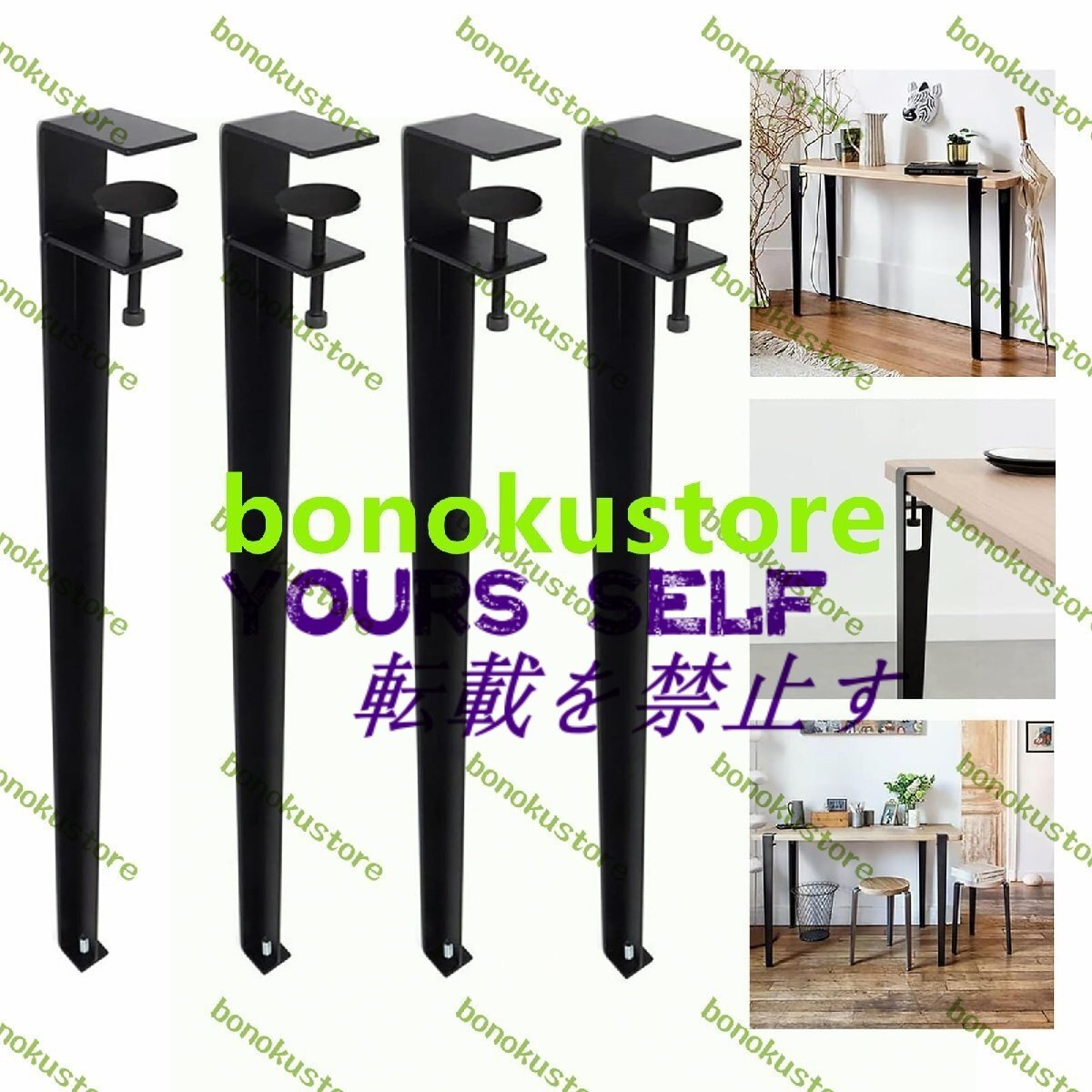 4本セット家具 テーブル脚 金属製の家具の脚 調節可能 F字型 ダイニングデスク脚 DIY テーブルクランプ脚 鉄脚 サポート脚、無孔設計のデスクトップ保護、床プロテクター付き black