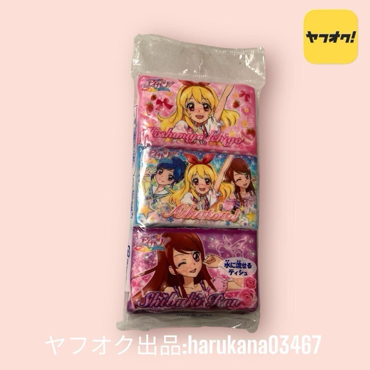 未使用 当時物  アイカツ!  ポケットティッシュ/ 巾着袋 星宮いちご 紫吹蘭 霧矢あおい 2013年 グッズ