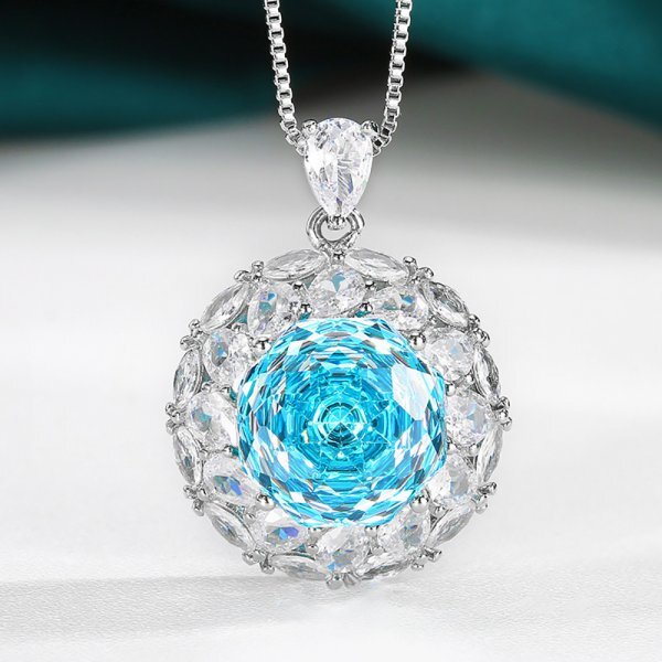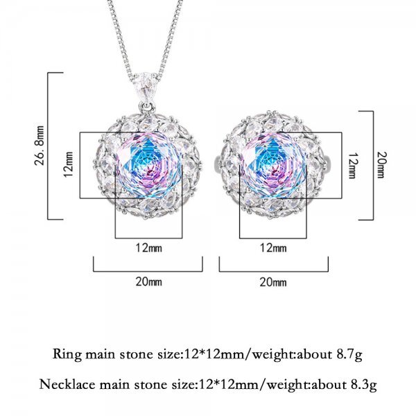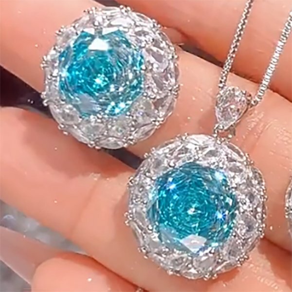 スパークリング 12 mmアクアマリンジュエリーセット(ペンダントネックレス、リング)、女性のためのウェディングジュエリー、記念日ギフト