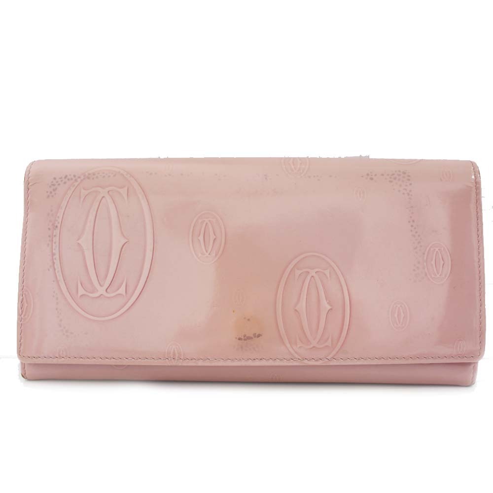 カルティエ 二つ折り ハッピーバースデー 長財布 レディース パテントレザー ピンク 中古 CARTIER
