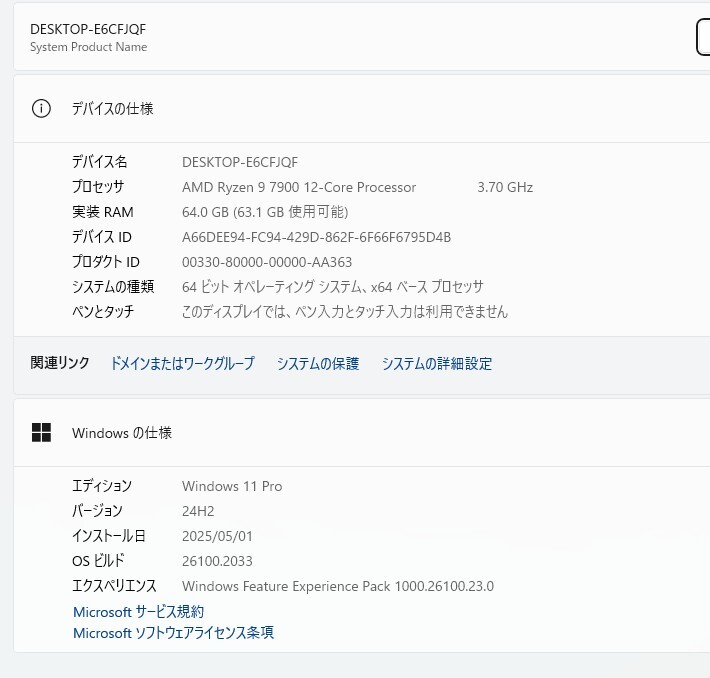 ・CPU:AMD Ryzen 9 7900 @3.70GHz