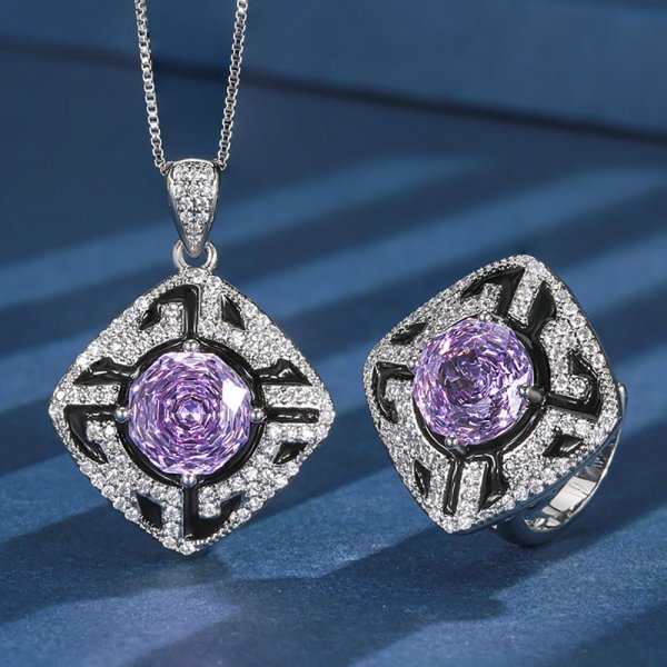 高級 10*10 ミリメートルアメジスト宝石ジュエリーセット(ペンダントネックレス、リング)、女性のためのウェディングパーティー、女性ギフト