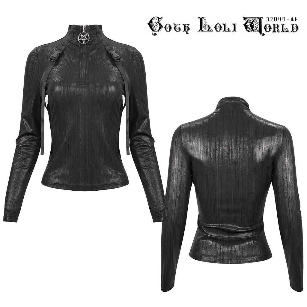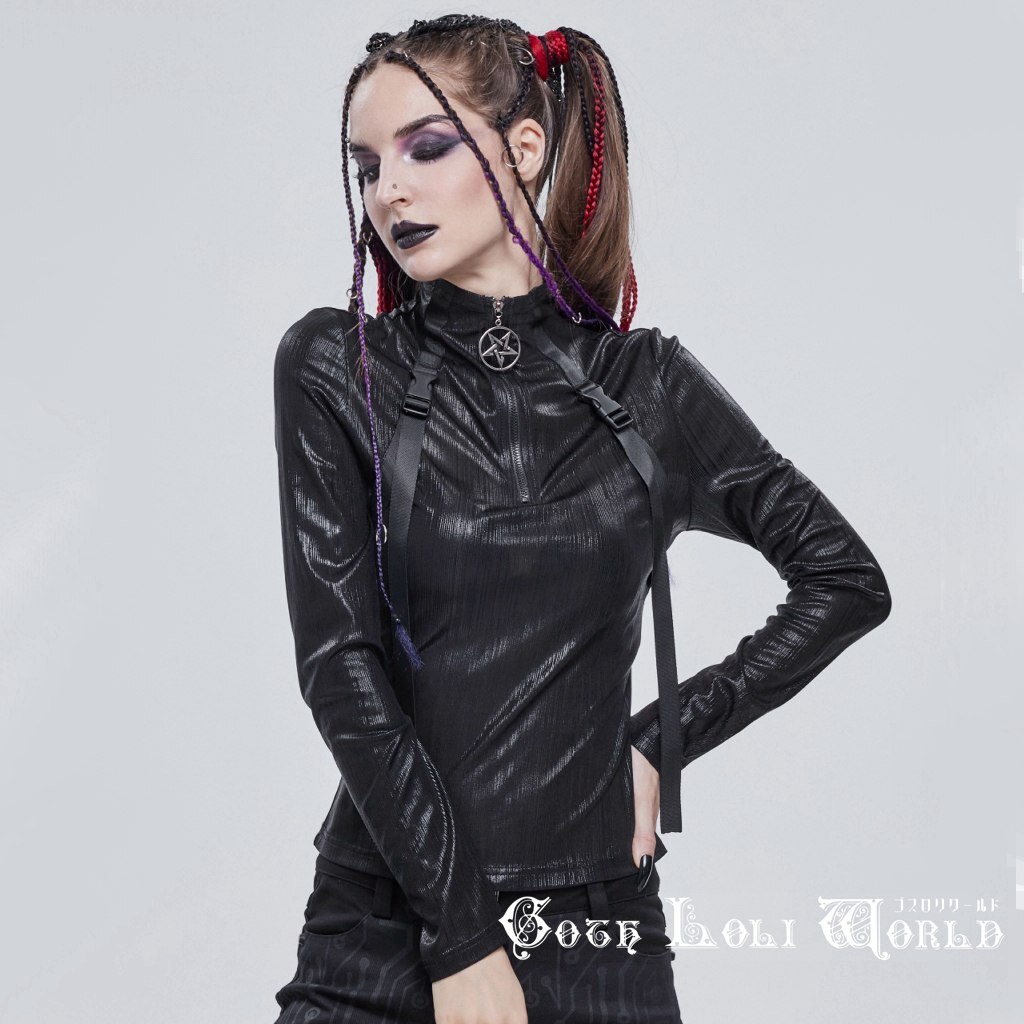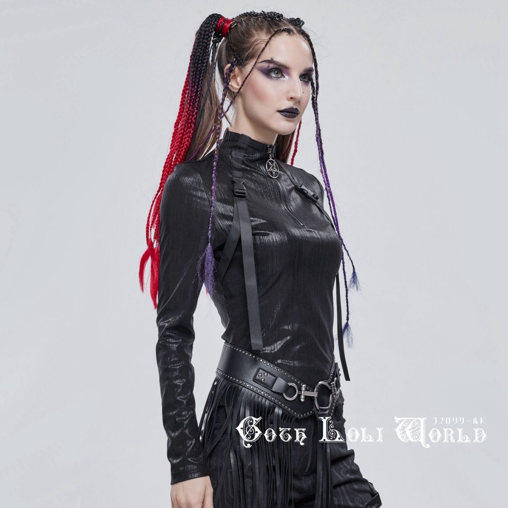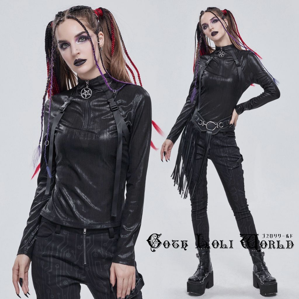 TT179-L ゴシックファッション ハイネックダブルベルトハーネス風 カットソー ゴスロリワールド ゴシック パンク ロック ビジュアル系 V系