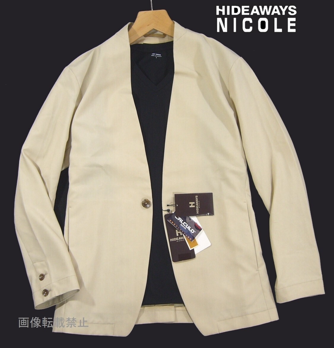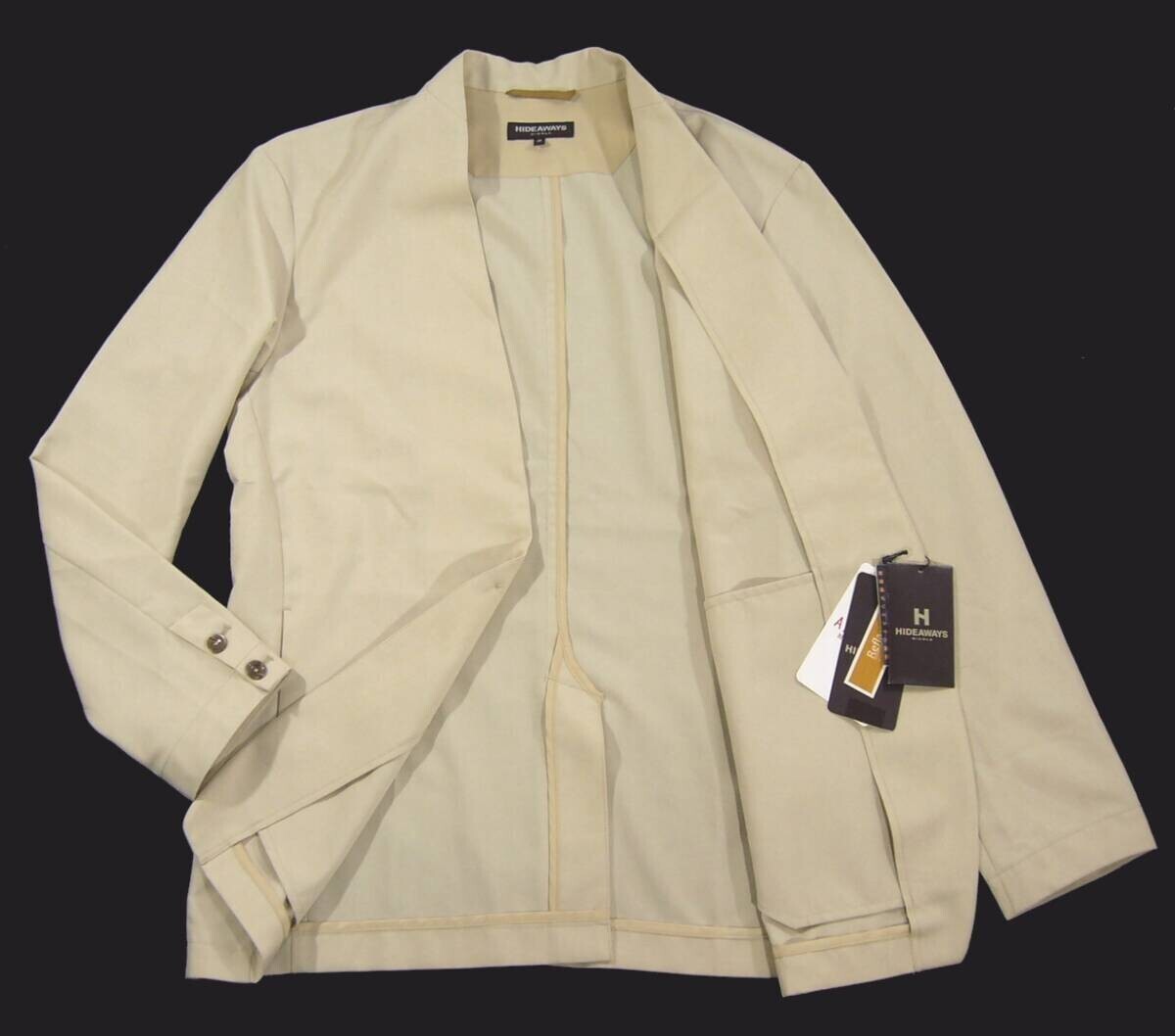 新品 未使用 ハイダウェイ ニコル ドライタッチ ノーカラージャケット 48/L ベージュ カーディガン感覚 イージー HIDEAWAYS NICOLE メンズ