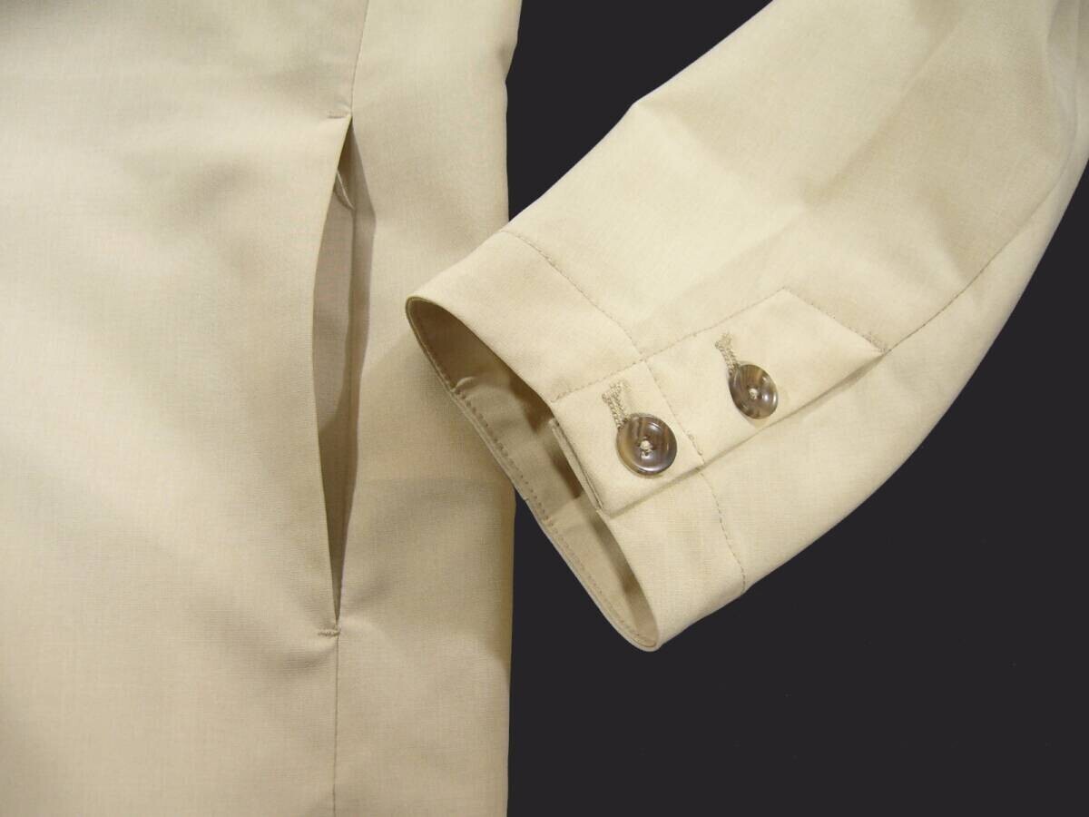 ●やや薄手の生地で裏地無し、フロントは1B、袖2B本切羽、センターベントです。