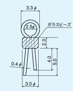 3.3Φリング、ビーズ高さ2mm、足0.4Φ