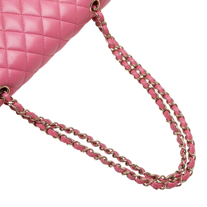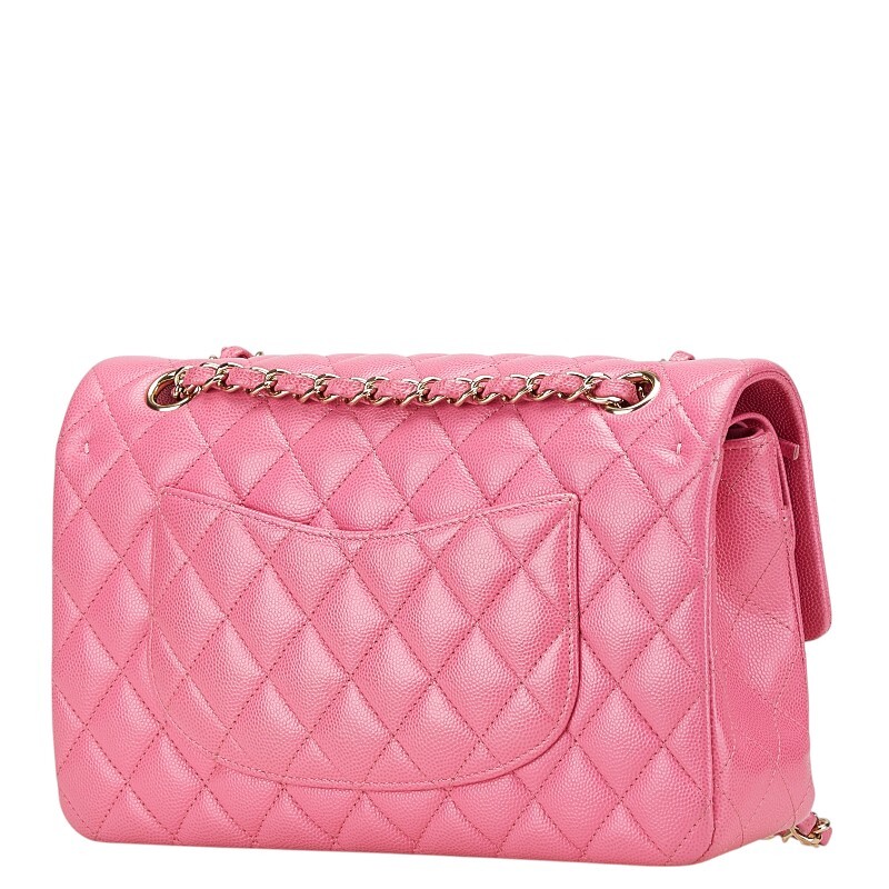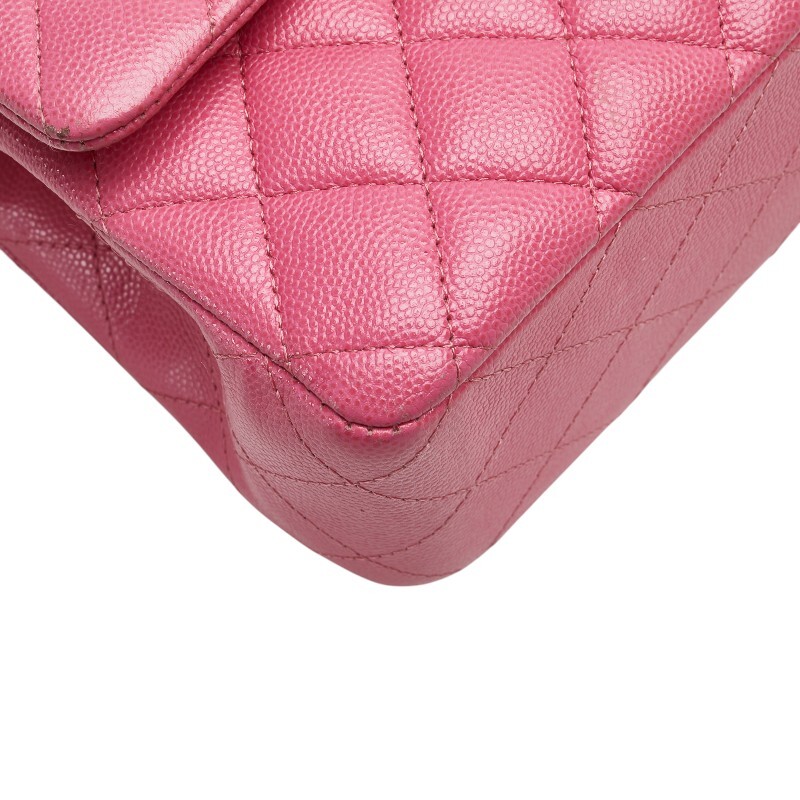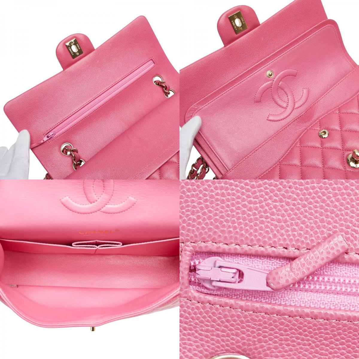 シャネル ココマーク マトラッセ25 ダブルフラップ チェーン ショルダーバッグ ピンク ゴールド金具 キャビアスキン CHANEL 【中古】