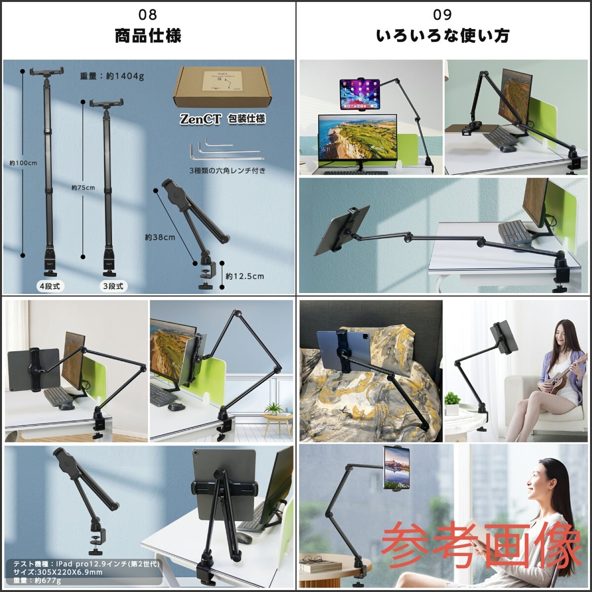 タブレットアームスタンド タブレットスタンド ipadスタンド 2WAY 4段式・3段式自由切替 折畳み式 多関節 高さ角度調整 4.7〜12.9インチのiPad Pro/iPad/Kindle Fire/Switch/surface/iPhoneに対応 コンパクト リビング 寝室 オフィス 日本語取説 CT221 |