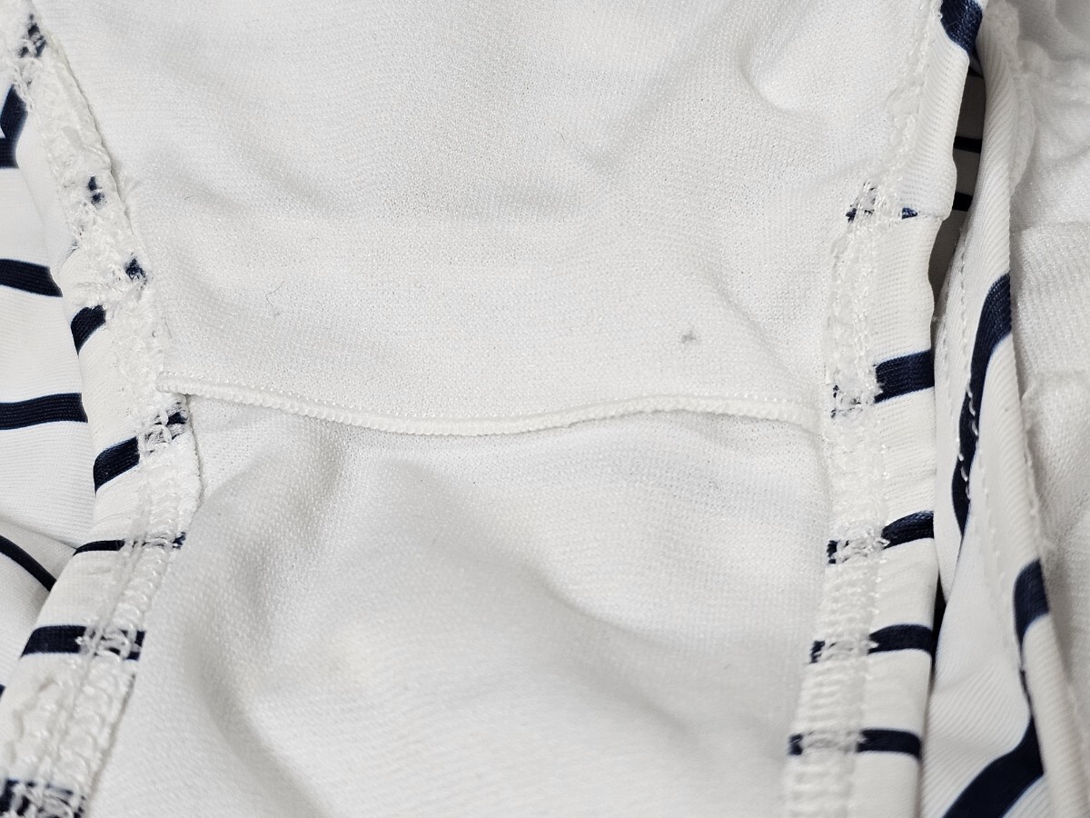 未使用品ですが、パンツ内側に小さな穴が2か所あります。生地が重なっている部分なので着用には問題ないです。
