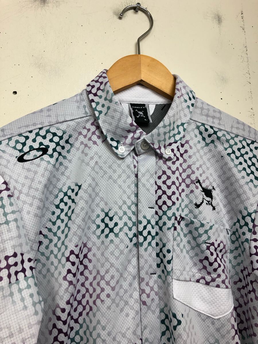美品 OAKLEY skull オークリー 前開き 長袖シャツ メンズLL ゴルフウェア ポロシャツ 速乾ストレッチになります。