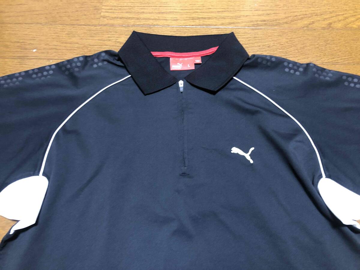 ★即決★PUMA GOLF プーマ ゴルフ★ジップフロントポロシャツ★黒×白★Lサイズ★日本製★速乾素材★ポリエステル★送料230円★