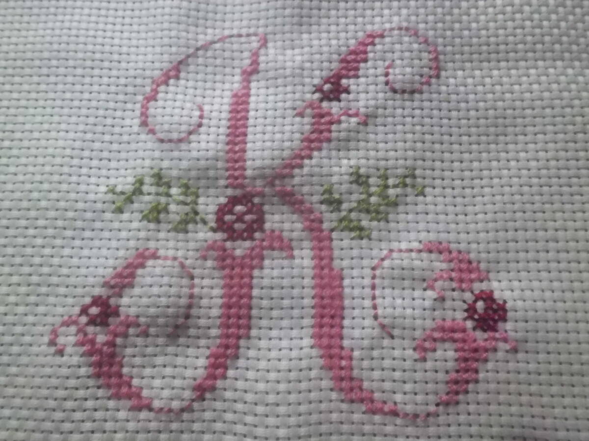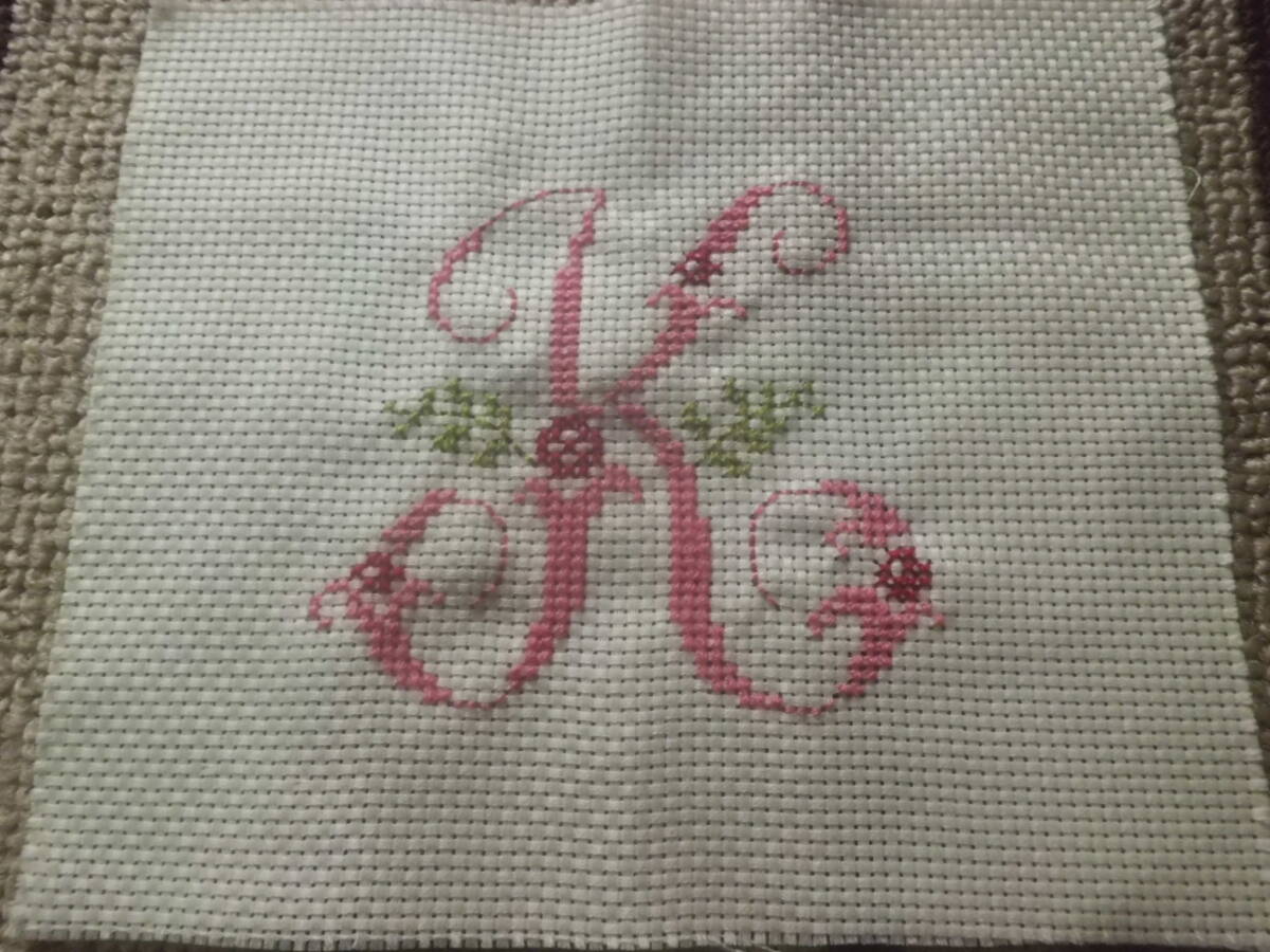 ハンドメイド クロスステッチ 完成品 イニシャルK ピンク 刺繍 刺しゅう