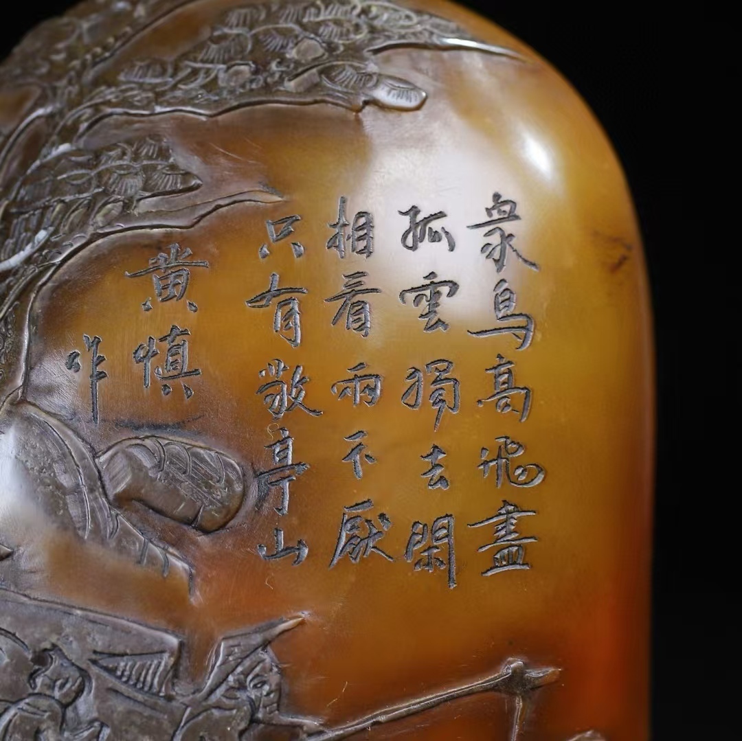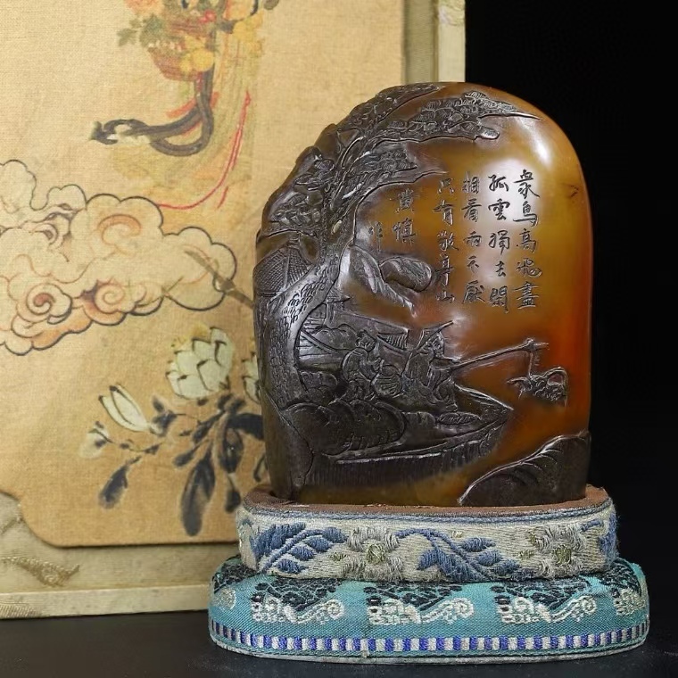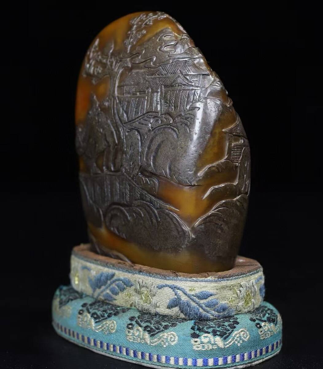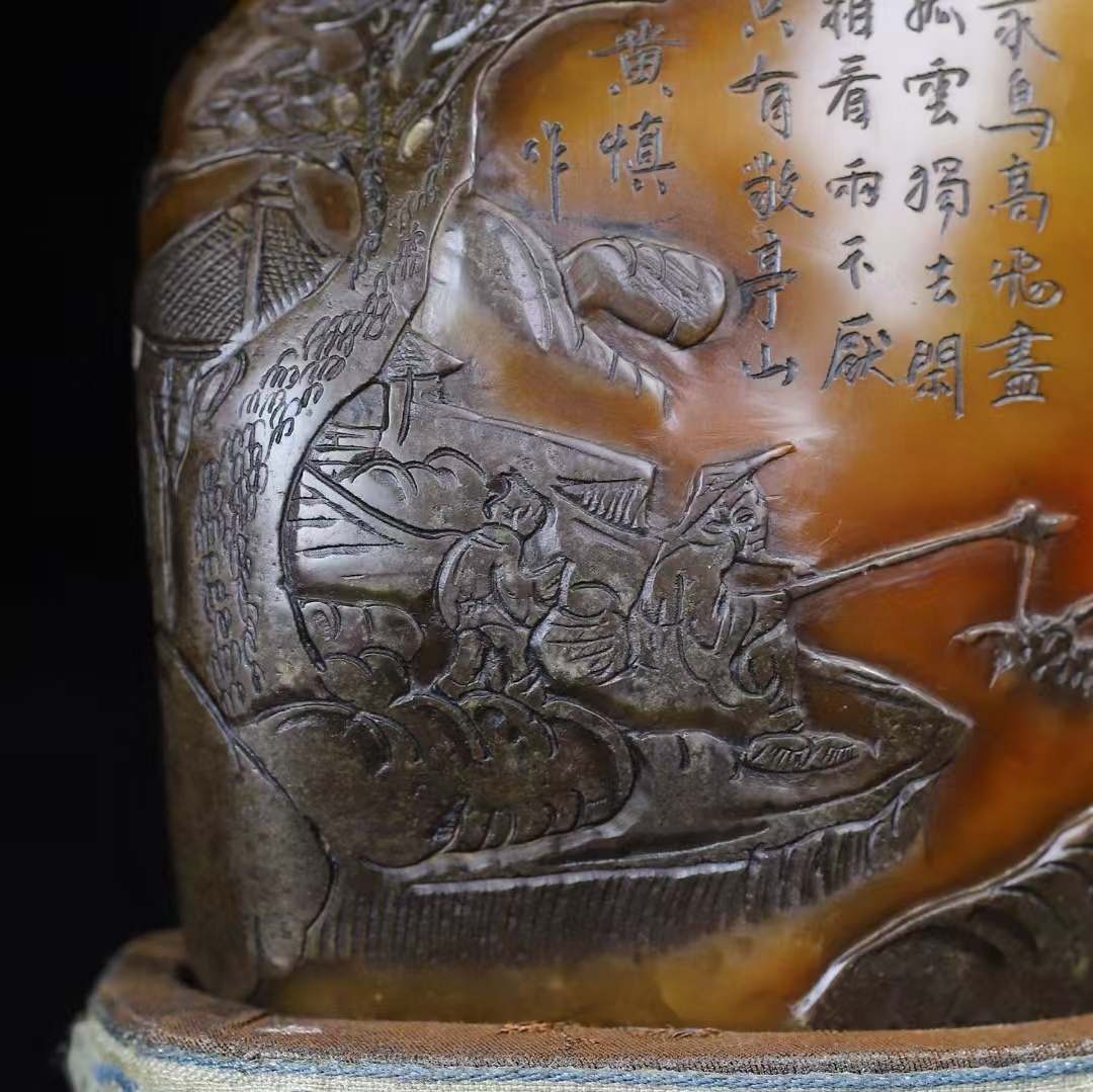 秘藏 清代 カラス皮寿山石スタンプ。『唐詩山水人物』 印章 印鑒 古印材 唐物 古玉彫 天然石 稀少珍品 古美術 古賞物 置物 旧蔵 6.17