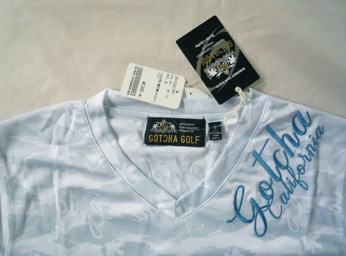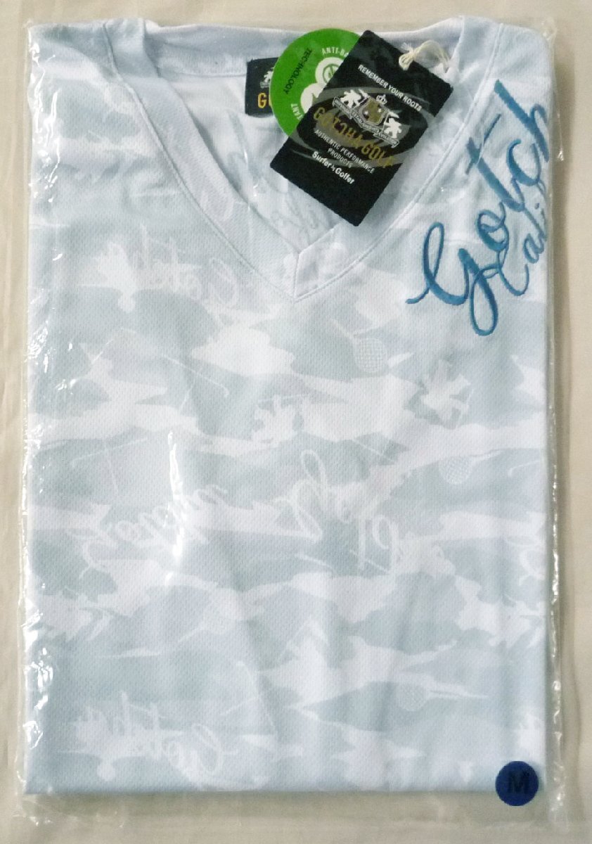GOTCHA GOLF ガッチャ ゴルフ 長袖Tシャツ ロンT Vネック 刺繍 ロゴ 迷彩柄 Mサイズ ホワイト 白