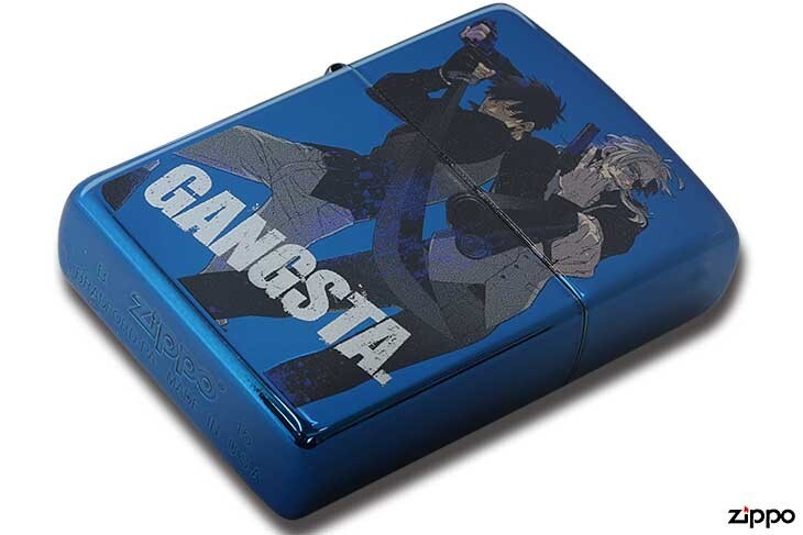 『GANGSTA.』は、コースケ先生による漫画作品。2015年にはアニメが放送されました。3つのマフィアと傭兵ギルドが支配する街・エルガストルムで「便利屋」を生業にする、ニコラスとウォリック。最高にクールなブルーに映えるそんな2人の立ち姿をフルカラーでプリント!裏面には、ロゴマークがデザインされたZippoです。是非、コレクションして欲しい逸品。