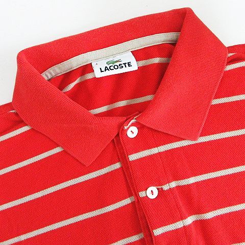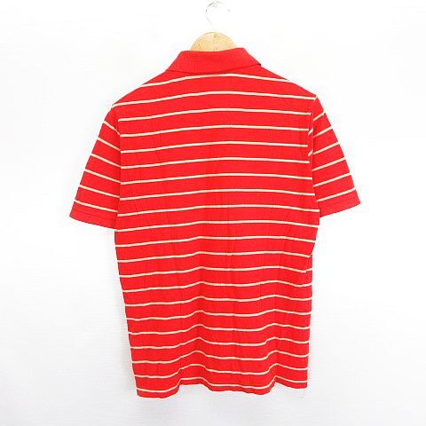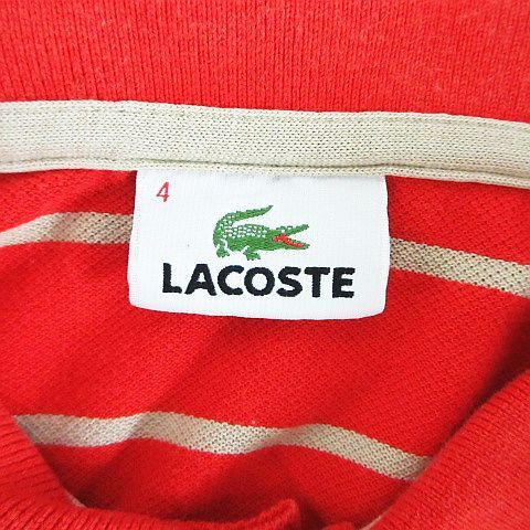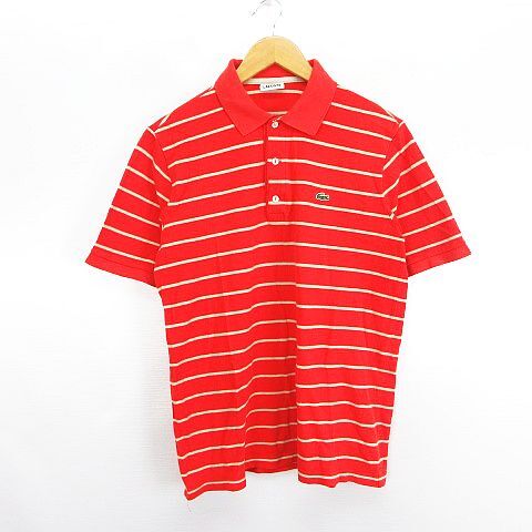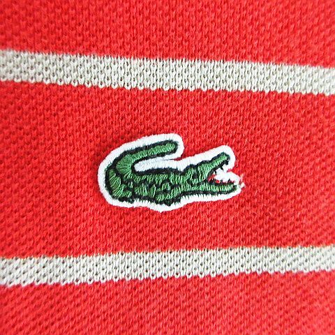 ラコステ LACOSTE ポロシャツ 半袖 ボーダー ロゴ ワッペン コットン 4 バーミリオン ※EKM メンズ