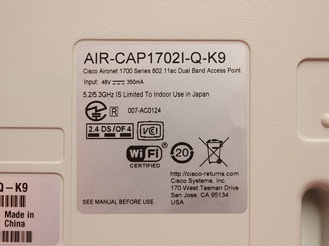 ■商品内容:AIR-CAP1702I-Q-K9 1点 Cisco AIR Cisco Aironet 1700シリーズの中古美品Cisco AIR(アンテナ本体) 整備点検済み・リフレッシュ済み