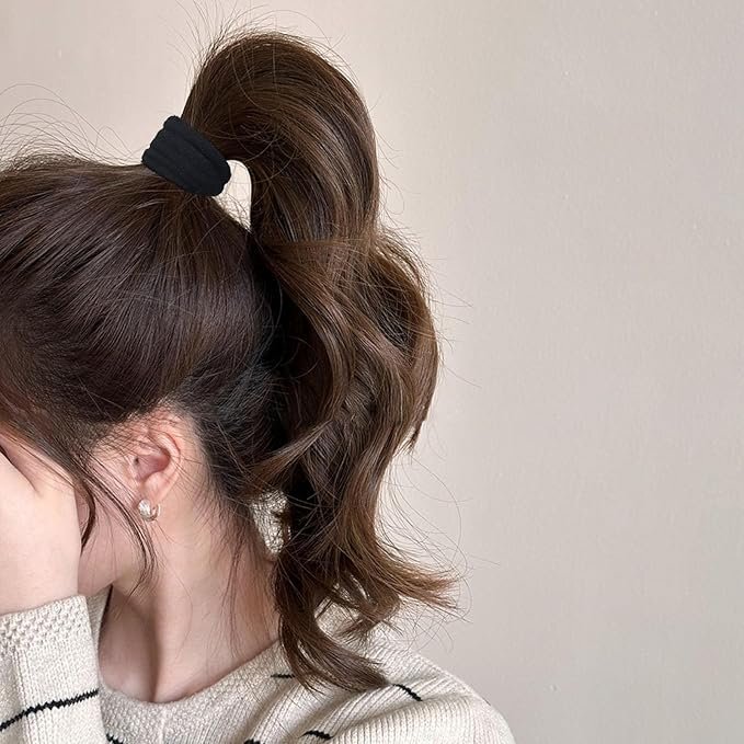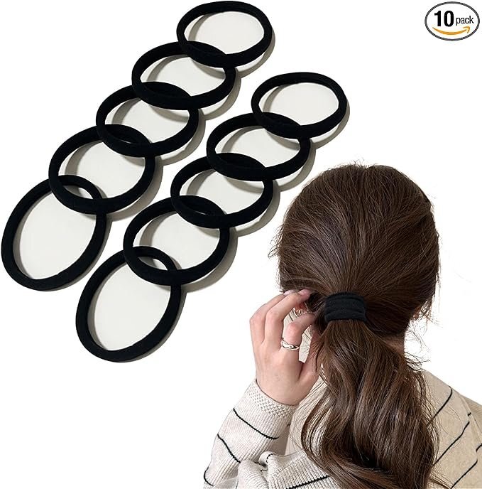 ヘアゴム 黒 おしゃれ 大人 ヘアアクセ お団子髪ゴム 髪留め 伸びる 太め 10個セット (ブラック) AA0781