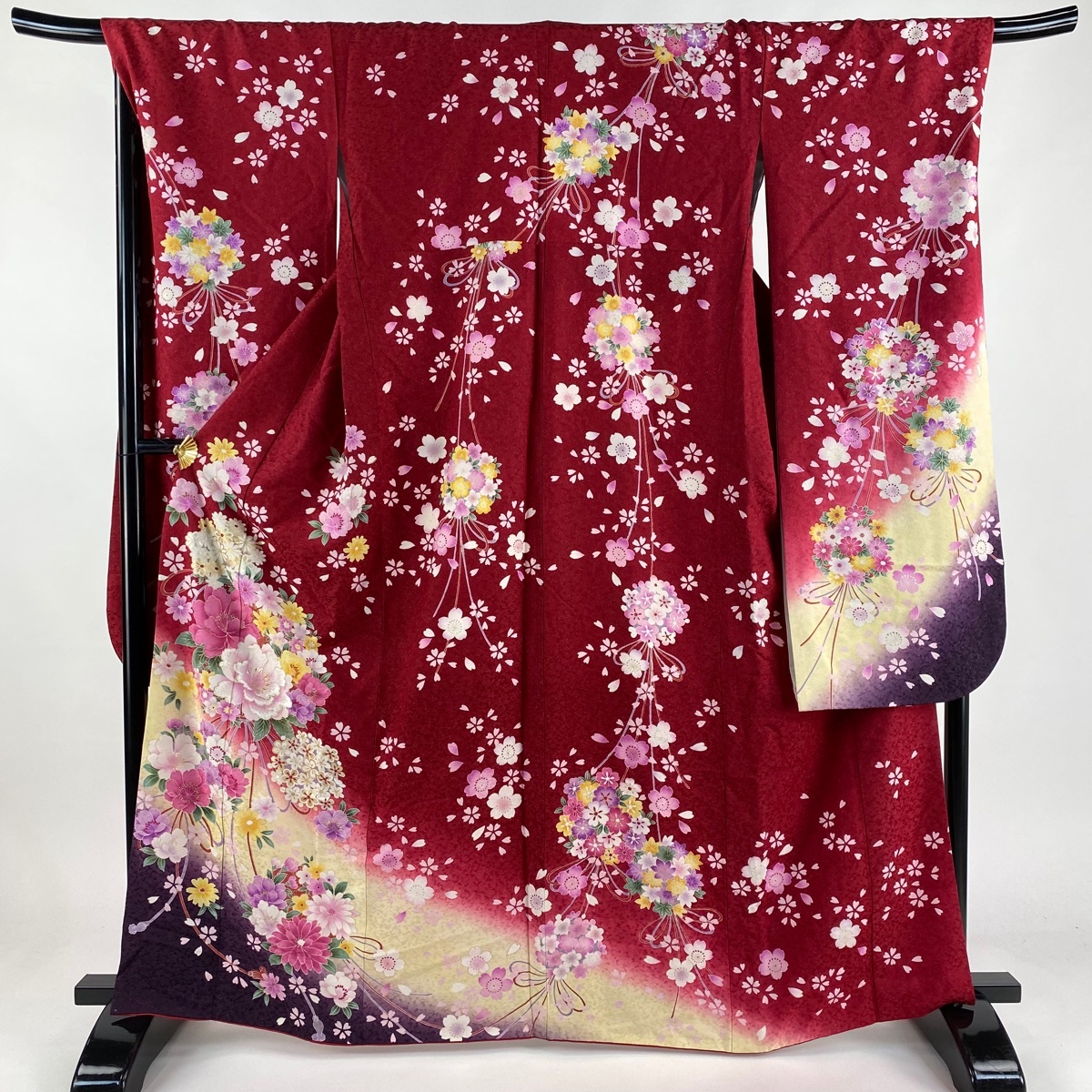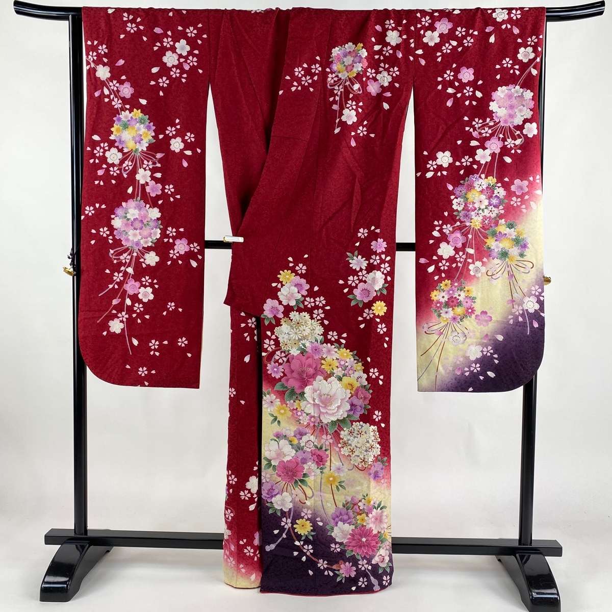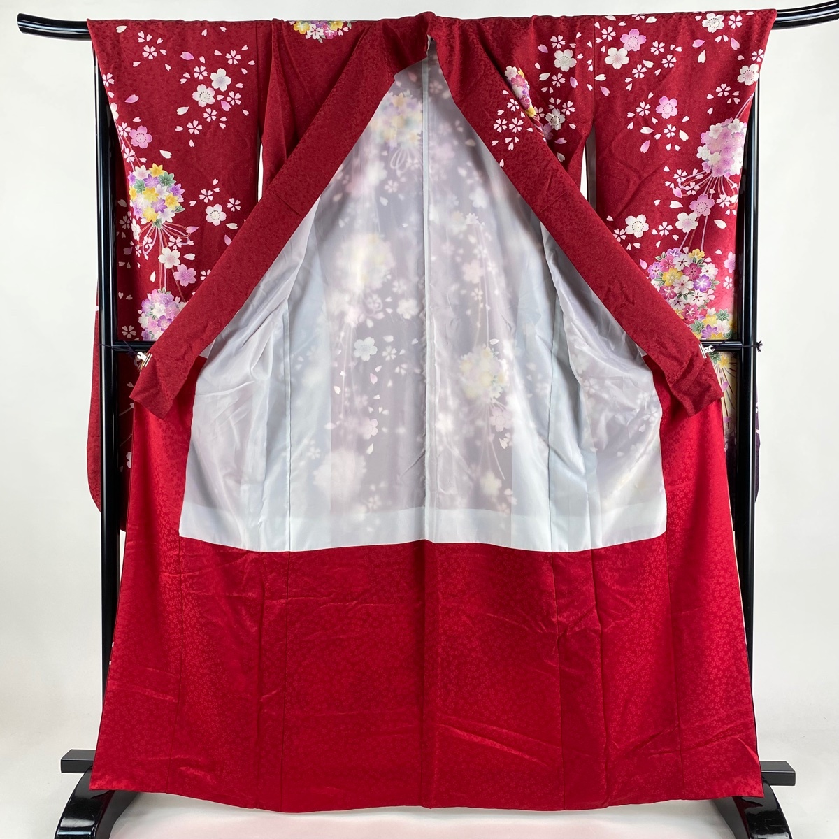 振袖 逸品 花束 桜 銀通し 刺繍 赤 袷 身丈163 裄丈70 L 正絹 【中古】 |