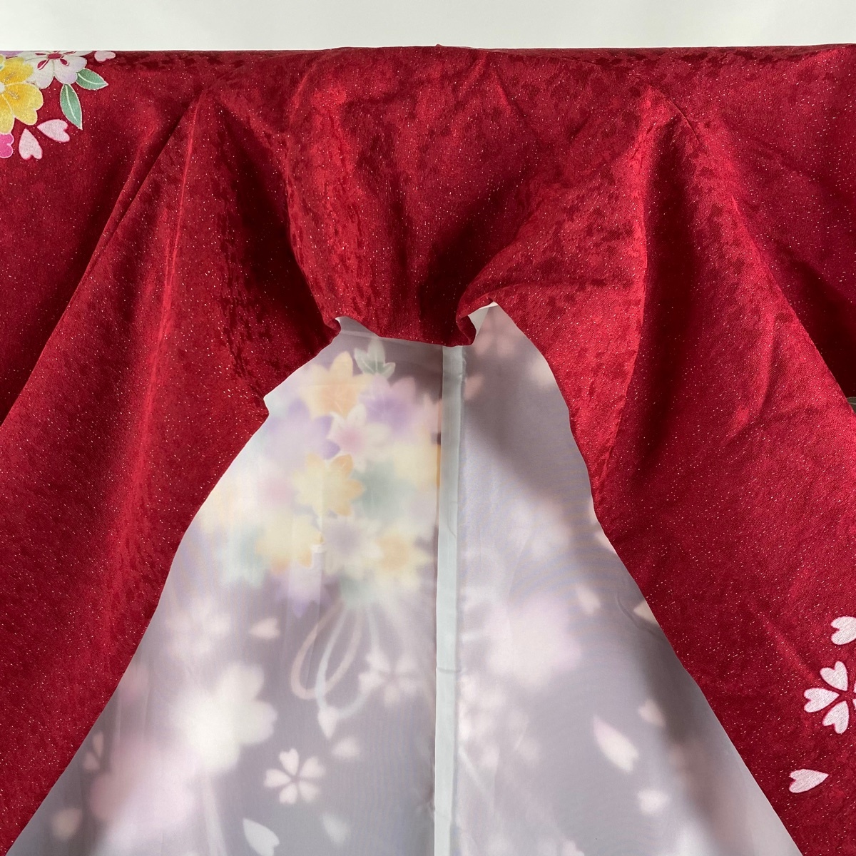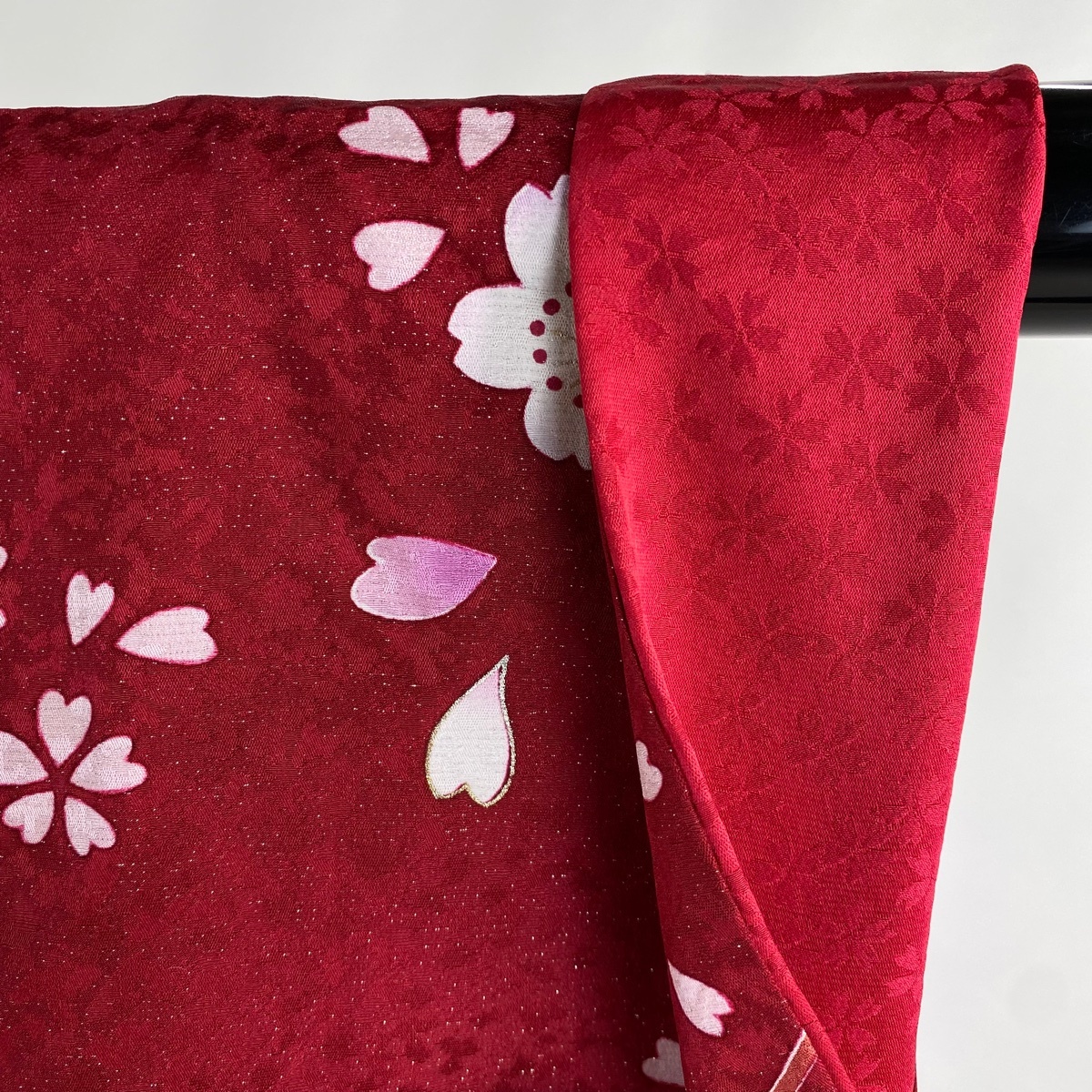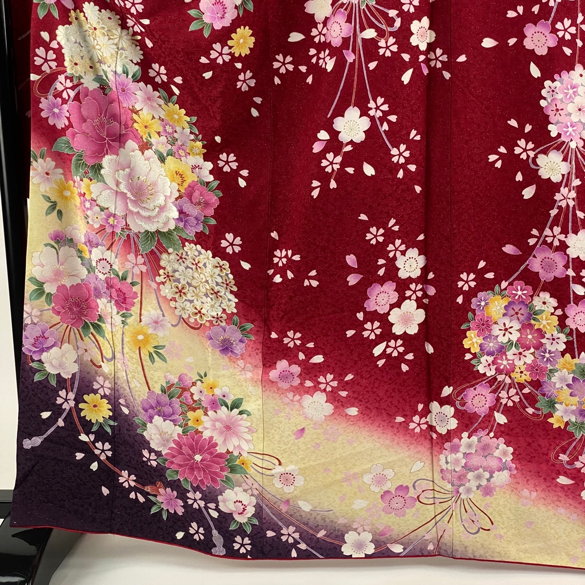振袖 逸品 花束 桜 銀通し 刺繍 赤 袷 身丈163 裄丈70 L 正絹 【中古】 |