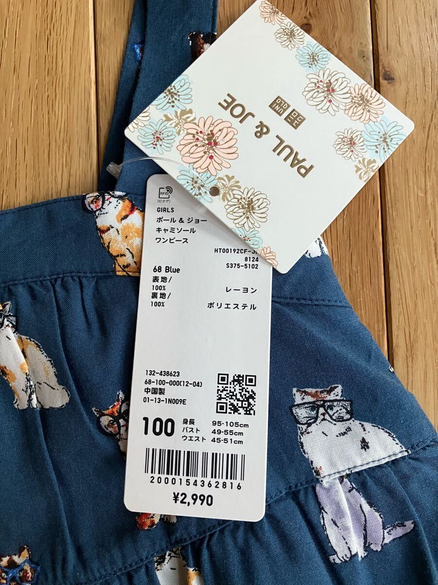 新品 ユニクロ 女の子 キッズ ポール&ジョー 猫 キャミワンピース 100