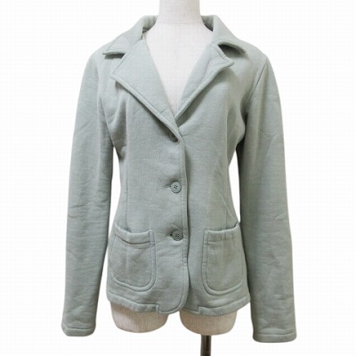 アニエスベー agnes b. テーラードジャケット スウェット地 シングル 3B 裏起毛 2 M相当 緑 グリーン ■GY22 X レディース
