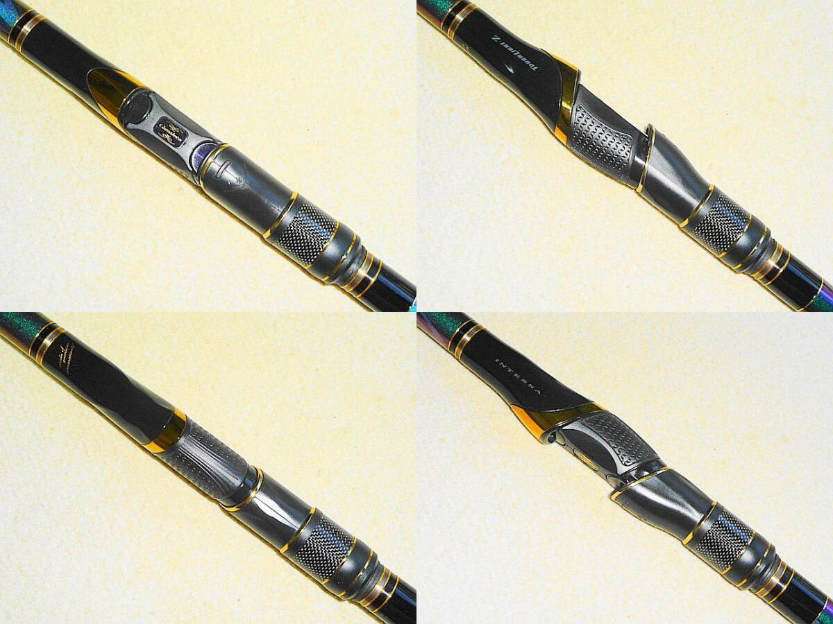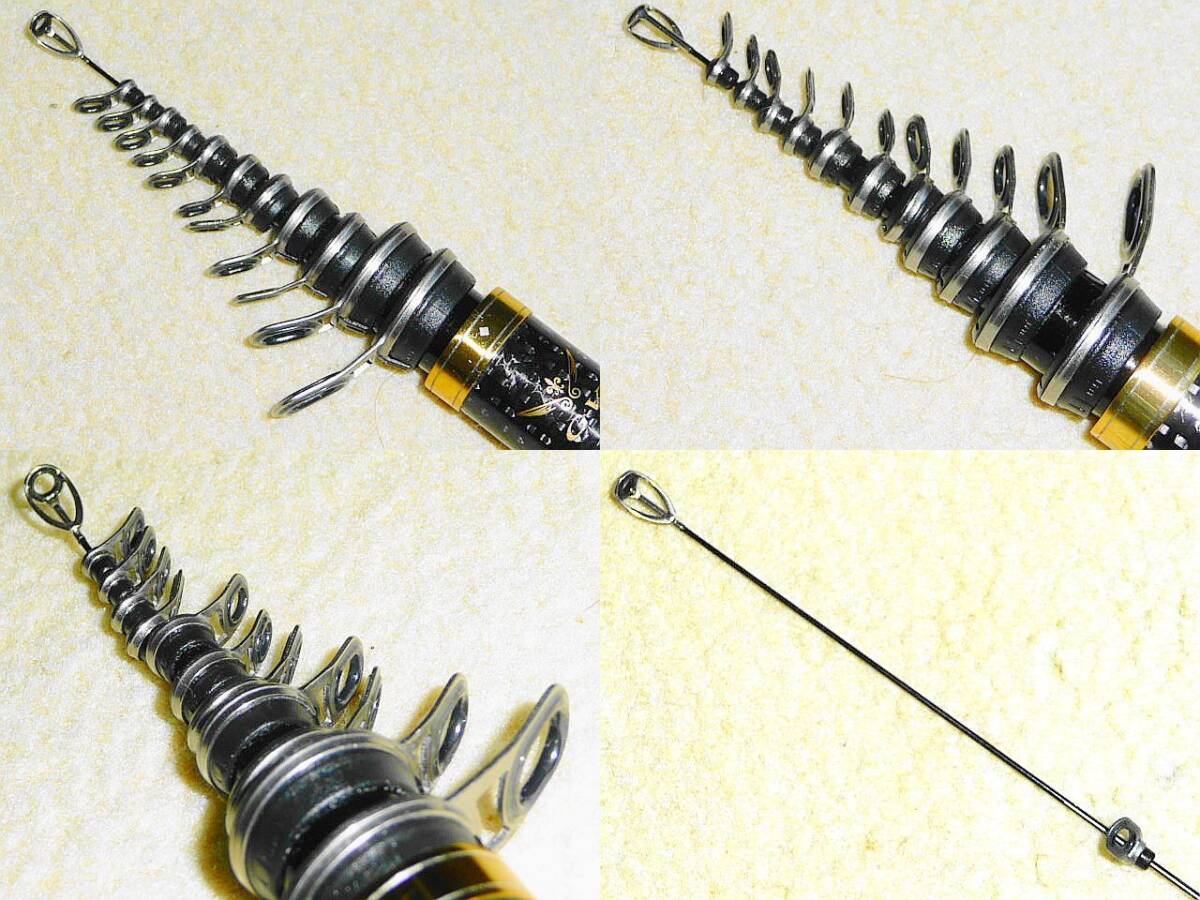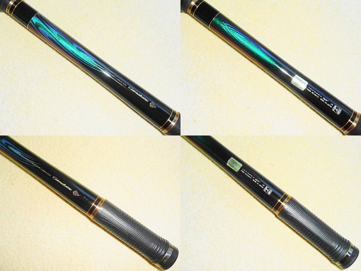 【商品名】 『がま磯 INTESSA(インテッサ) G-Ⅴ 2-53』 その5代目に課された使命とは・・・ それは他を圧倒する「力」です。 使用回数少ない超美品! 人気の2-53! ¥222,200※ 沖縄~北海道送料無料! TOP:TZチタン リールシート:スクリュー型 新品未使用のバランサーウエイト替尻栓付属! ※がまかつ WEB ⇒ Intessa G-Ⅴ 【程度】 超美品! 『★★★★☆』 □使用回数少なく超美品! □ブランクスに目立つキズなくキレイ ブリスターなし □リールシートメッキ部分に剥がれや錆なし □穂先の詰めなし □ガイドにキズや錆なし □尻栓の開閉問題なくキレイ □バランサーウエイト替尻栓付属(未使用状態) 【仕様】 ●号数 2号 ●全長 5.3m ●自重 268g ●仕舞寸法 117cm ●継数 5本 ●先径 0.8mm ●元径 24.2mm ●適合ハリス 1.5~5号 ●錘負荷 2~5号 ●モーメント 28.5 ●使用材料 C 99.5% G 0.5% ●TOPガイド TZチタン ●リールシート スクリュー型 【付属品】 ・トップカバー ・竿袋(ビニール部分に傷みあり) ・バランサーウエイト替尻栓(未使用新品) 【税込価格】 ¥222,200※ ※他の人気商品 ⇒ ここをクリック | ||