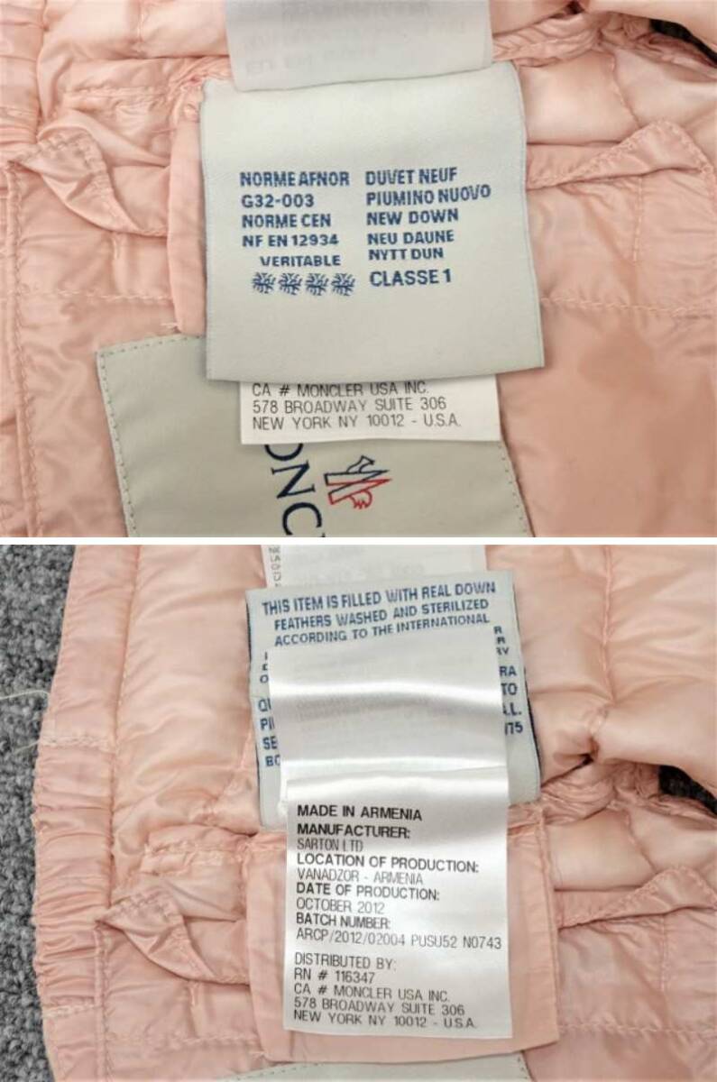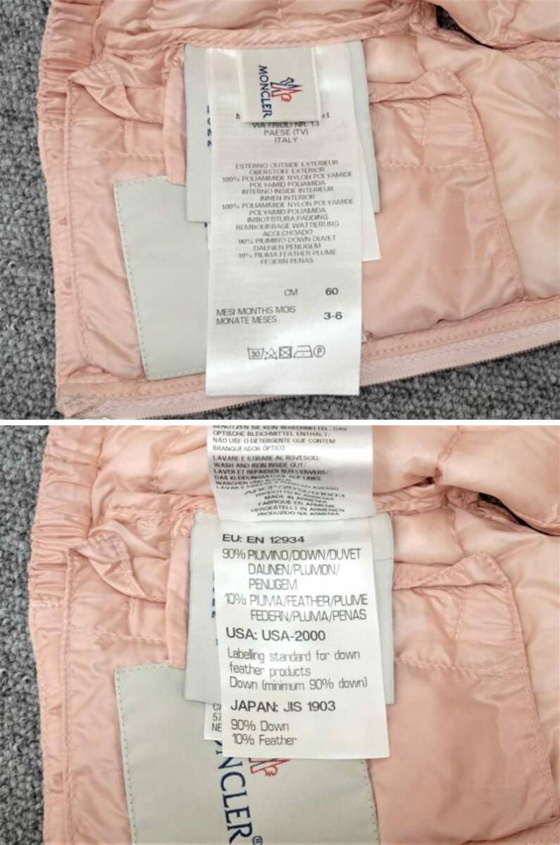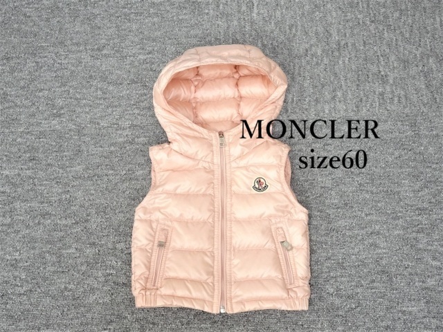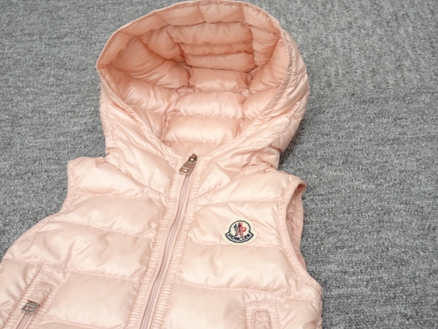 美品【MONCLER|モンクレール】baby フード付き ダウンベスト 軽量ダウン ライトダウン ライトピンク サイズ60