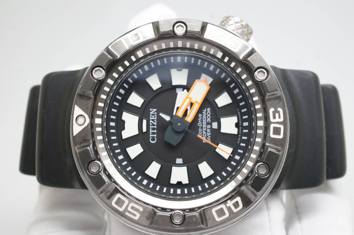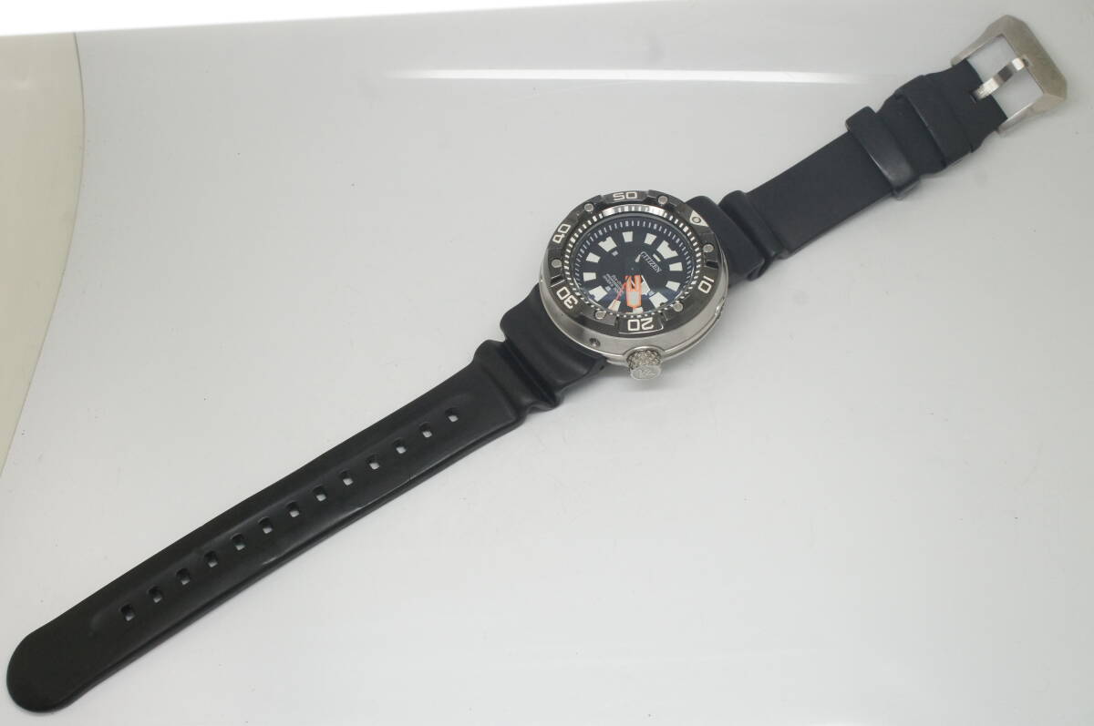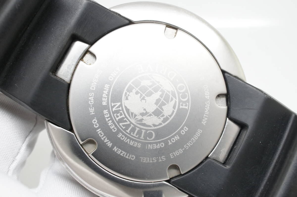 W69●作動良好 美品 CITIZEN シチズン プロフェッショナル E168-S103886 ソーラー 純正ベルト尾錠 ダイバーズ メンズ腕時計 シルバー