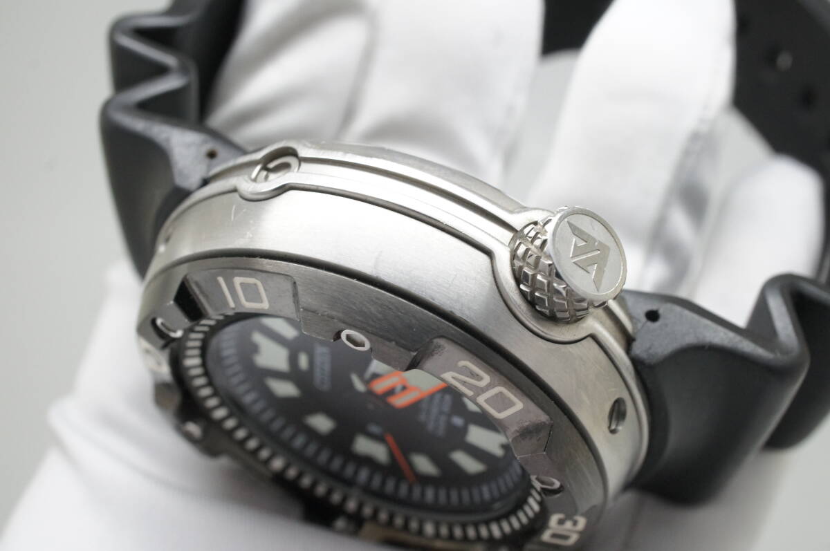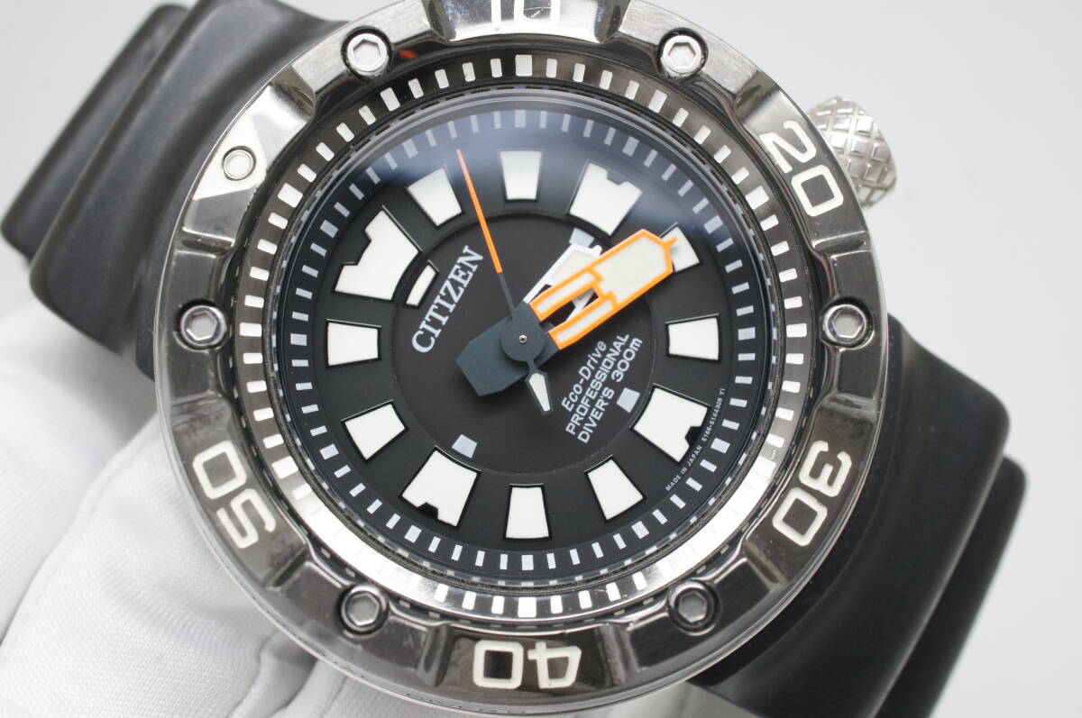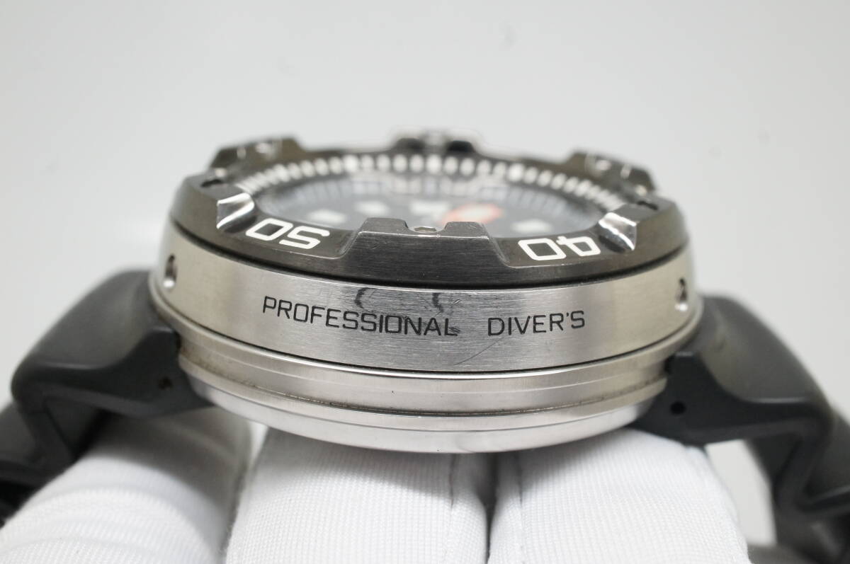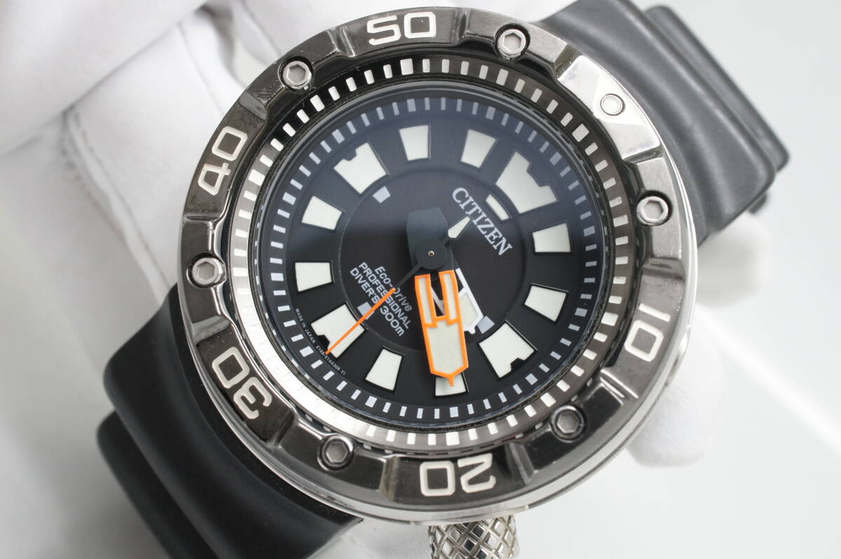 W69●作動良好 美品 CITIZEN シチズン プロフェッショナル E168-S103886 ソーラー 純正ベルト尾錠 ダイバーズ メンズ腕時計 シルバー