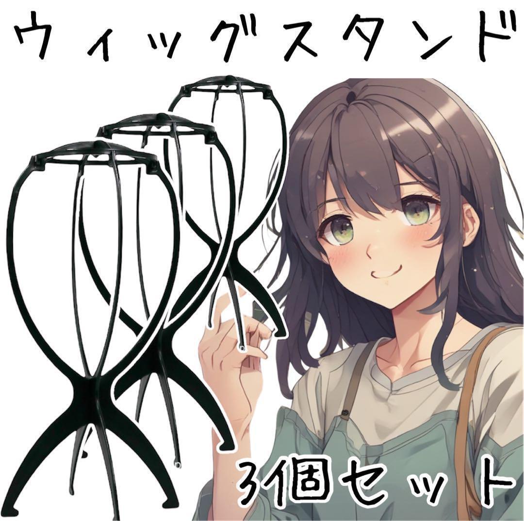 ウィッグスタンド かつら置き 折りたたみ コスプレ ブラック 黒 3個