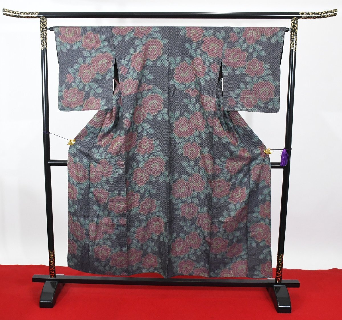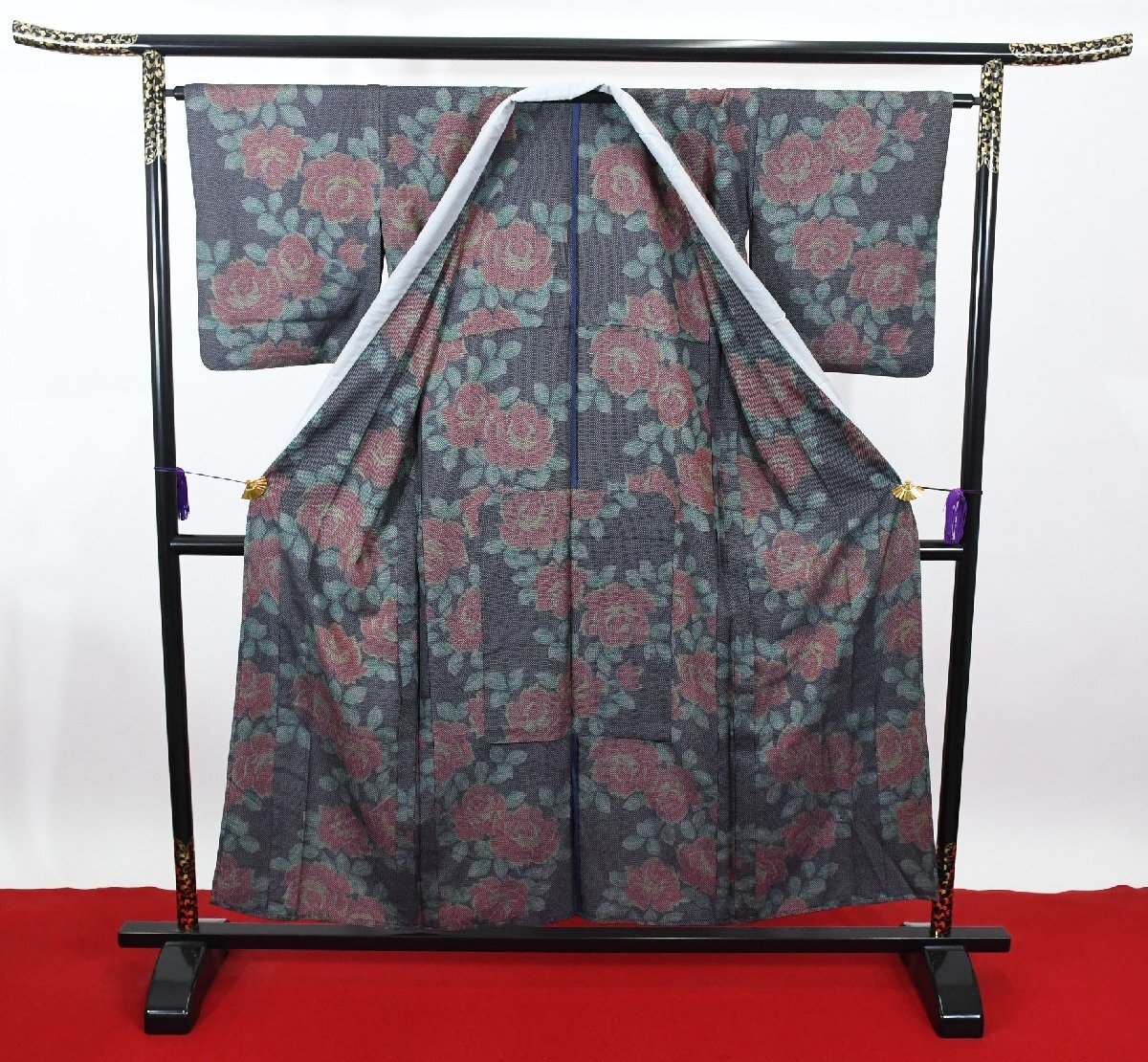 サイズ | ▼身丈 (背中から) 149cm ▼裄丈 65.5cm ▼袖丈 48cm ▼後巾 29.5cm ▼前巾 24.5cm |