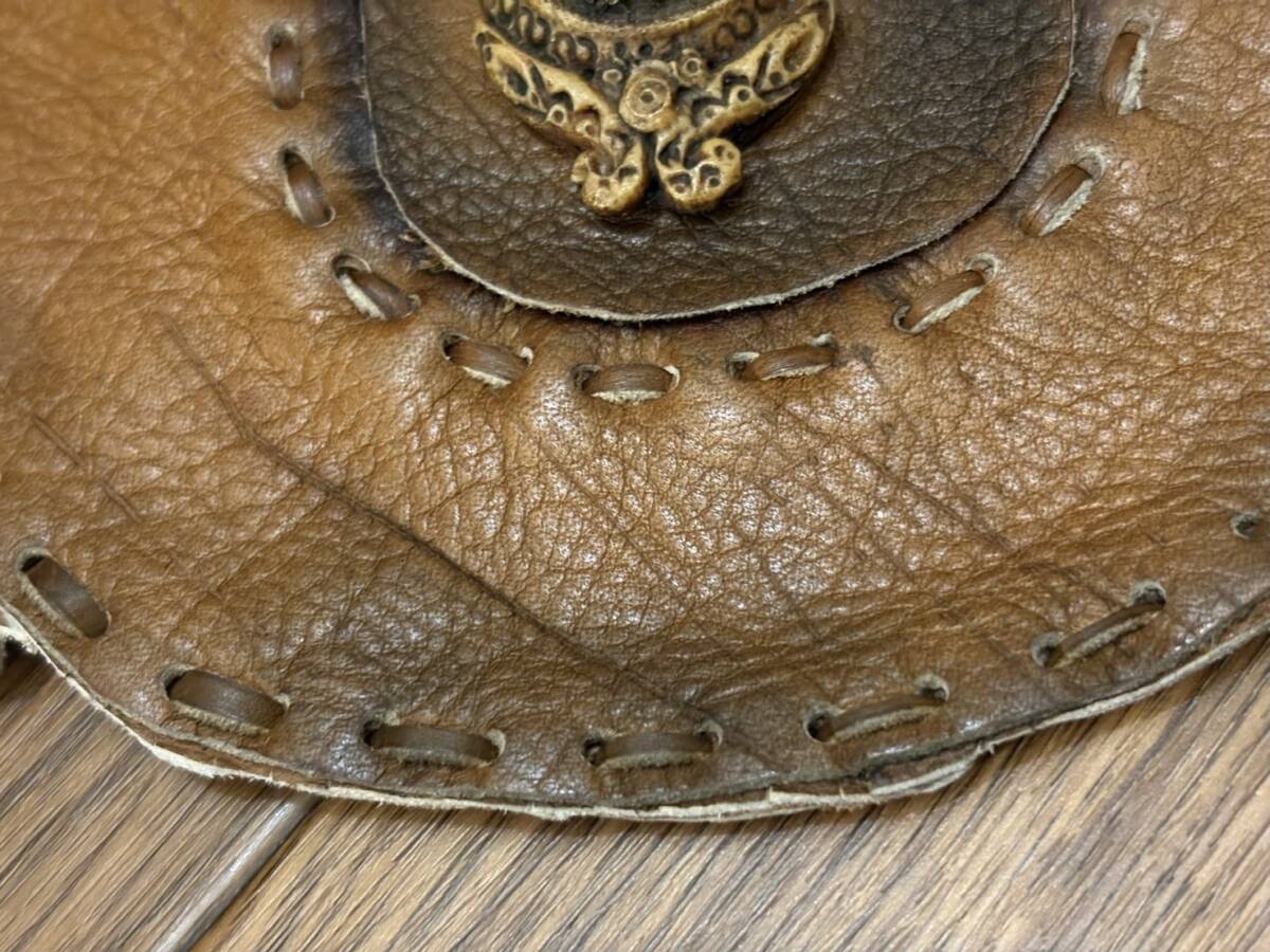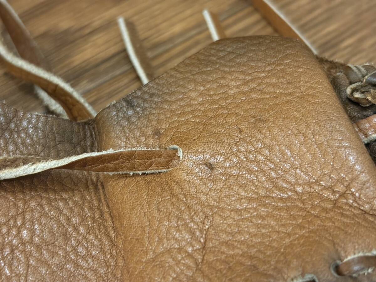 □ 革に血筋の線跡や小さい汚れのような跡が元々あります。革端沿いは黒い加工があります。