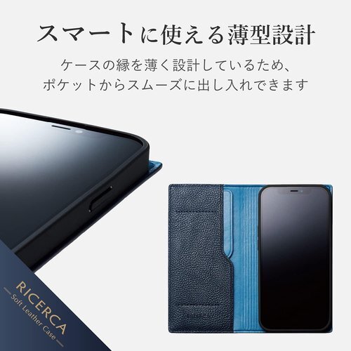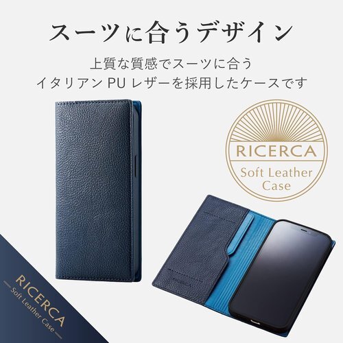 エレコム iPhone 13/レザーケース/手帳型/RICERCA Coronet /ロイヤルネイビー 776