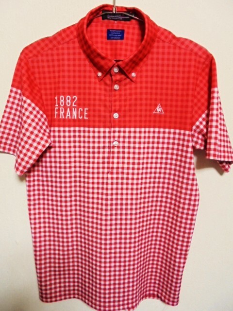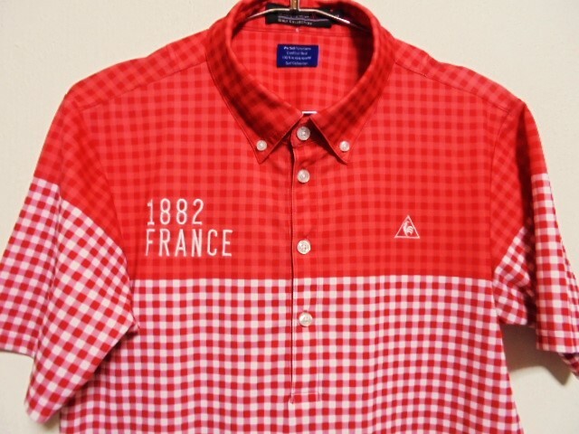 ●美品 ルコック ボタンダウン ししゅう入り チェック ポロシャツ サイズM●