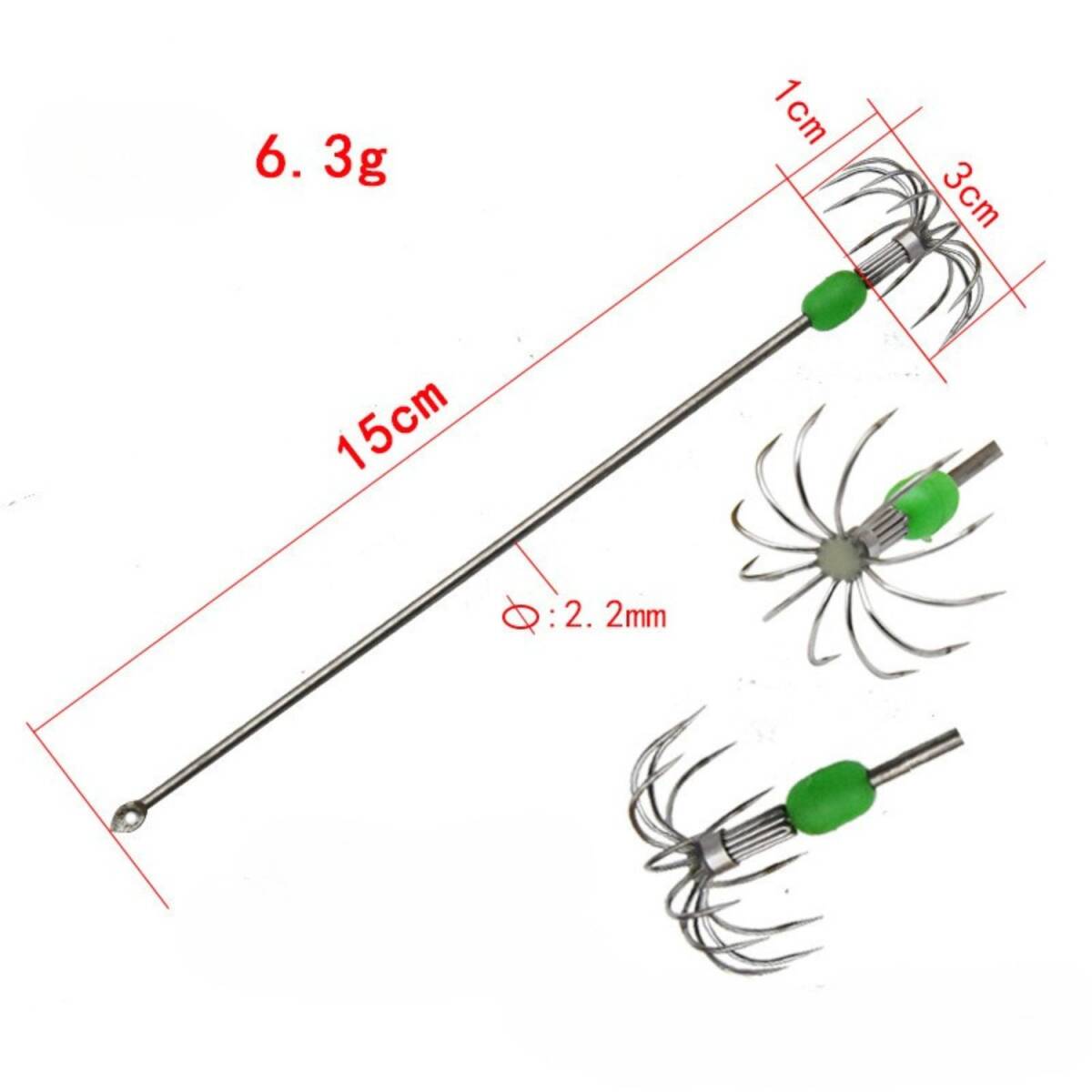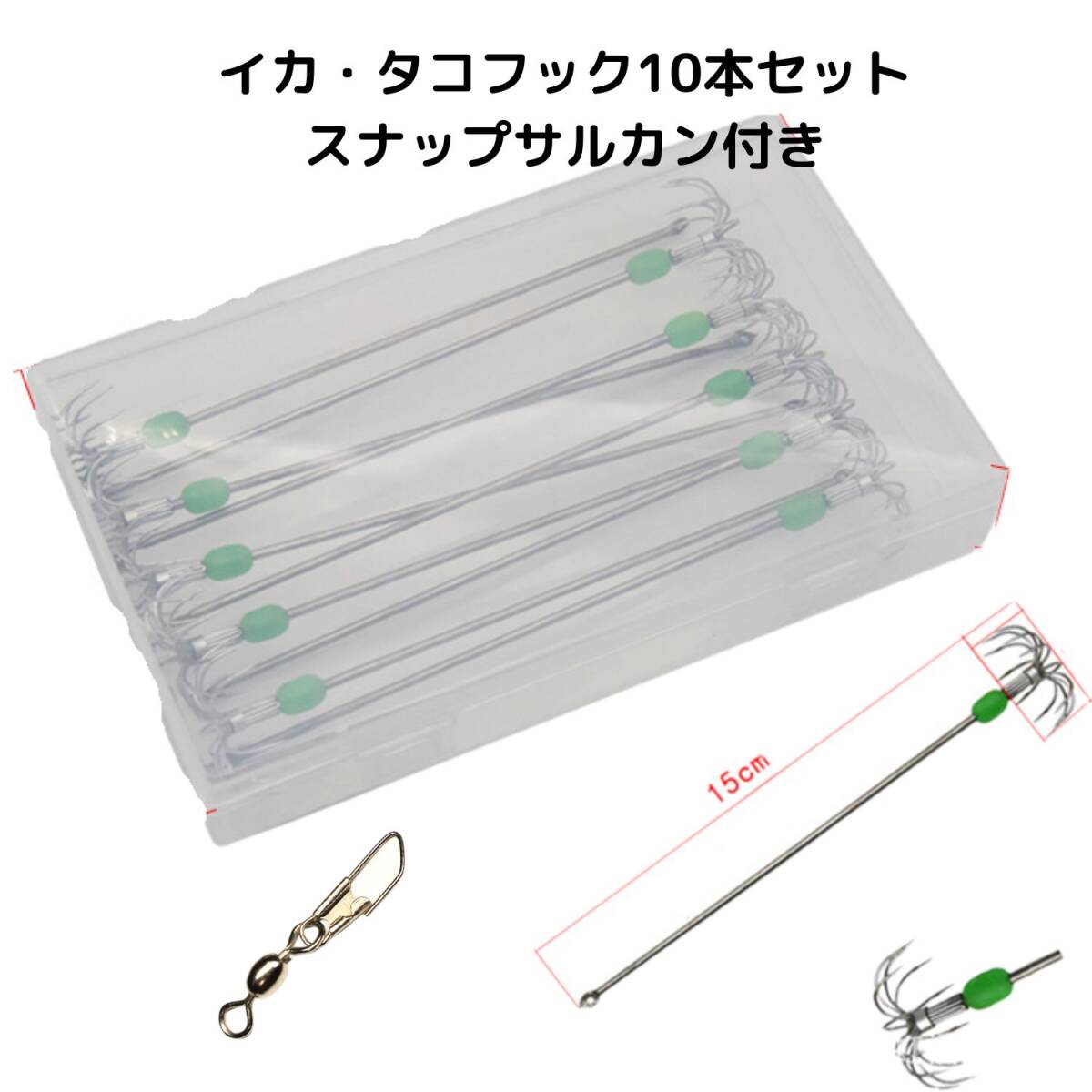イカ タコ フック10個セット15cm 夜行玉 スナップ付き シャフト ヤエン タコエギ 仕掛け ステンレス製