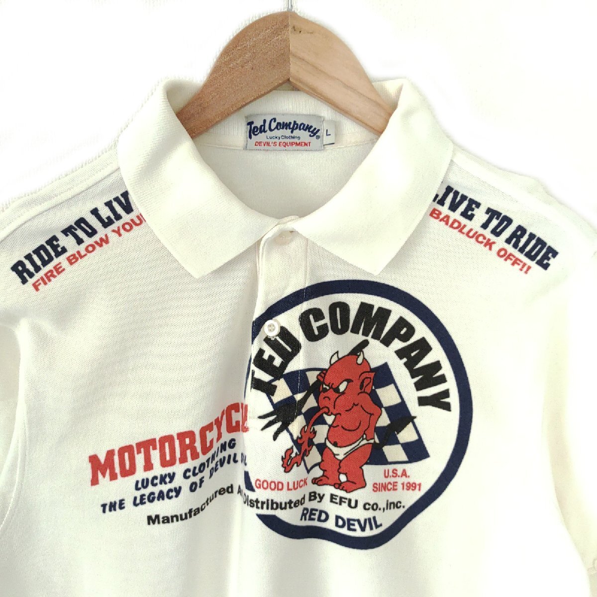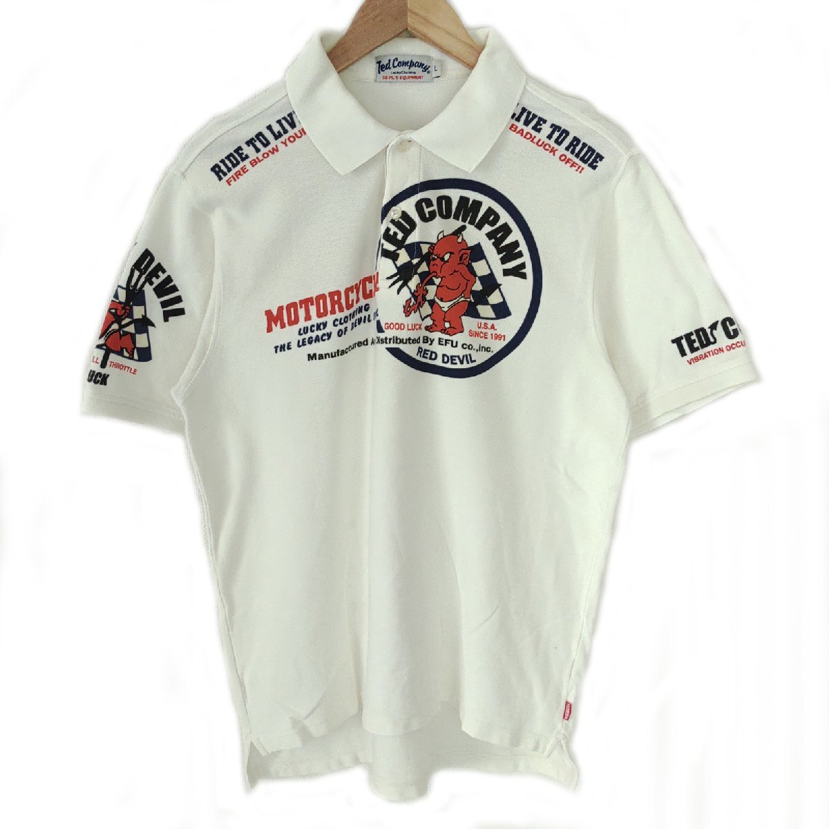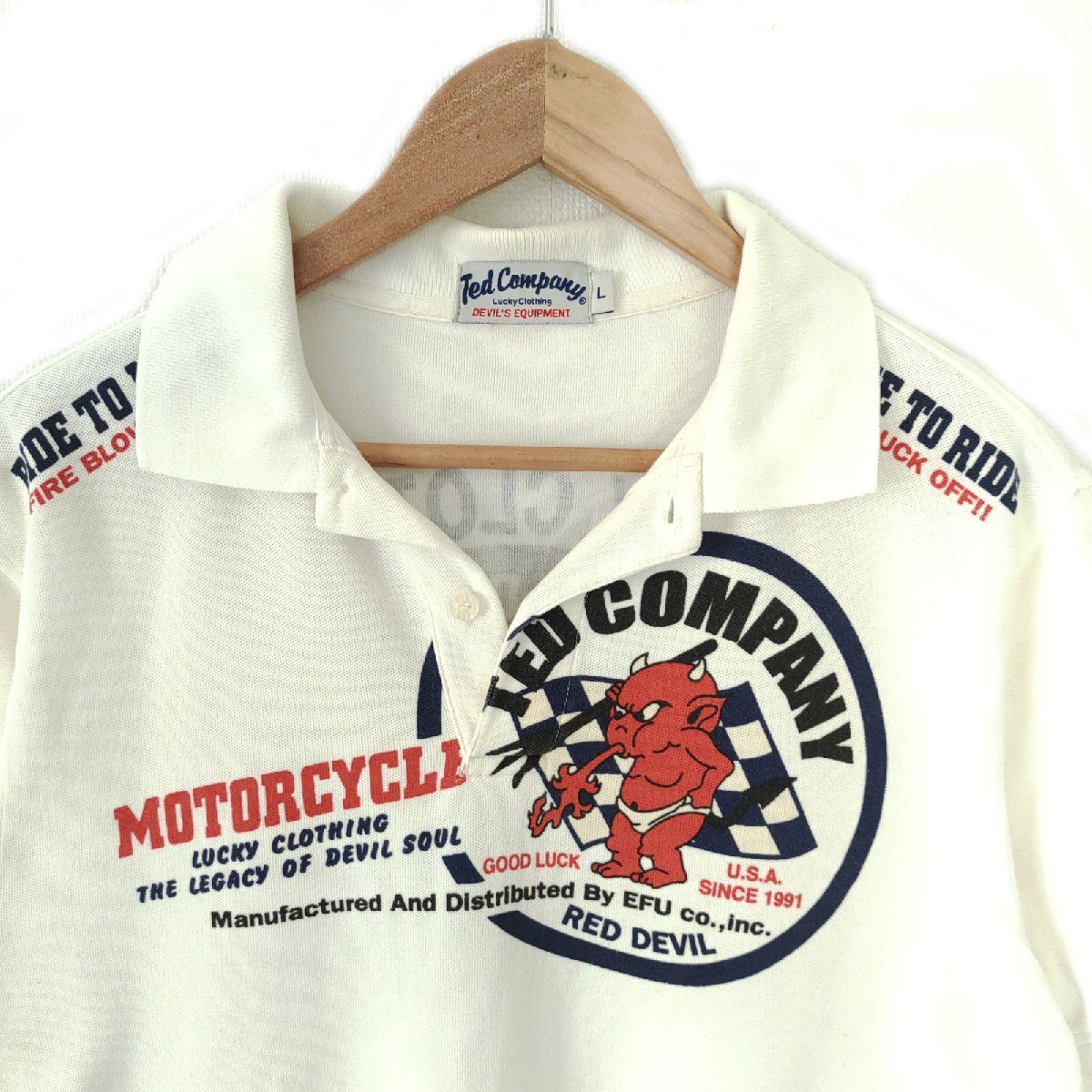 (^w^)b Ted Company テッドカンパニー 半袖 ハーフボタン ポロシャツ カットソー トップス スポーツ アメカジ デビル 悪魔 白 L O13584DD