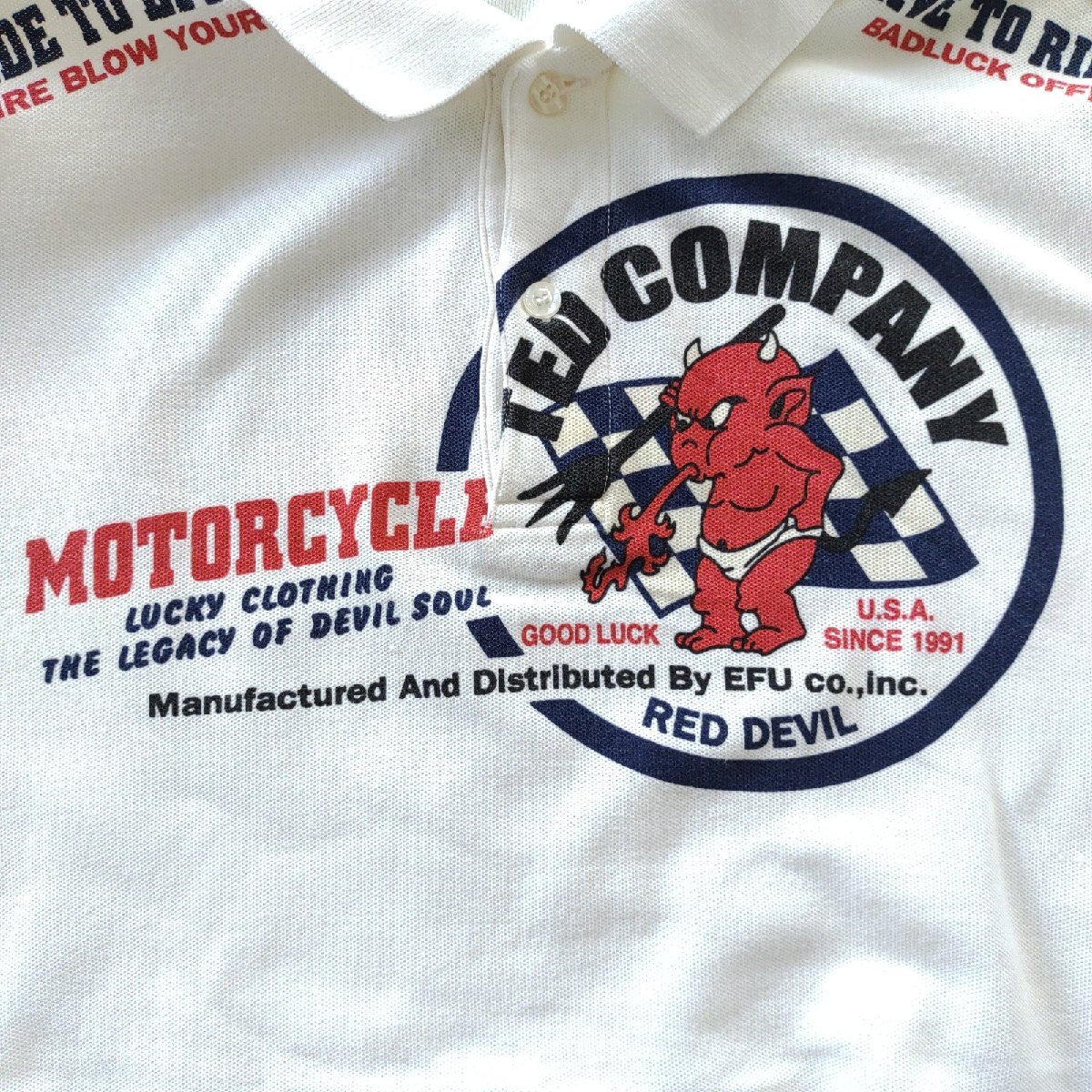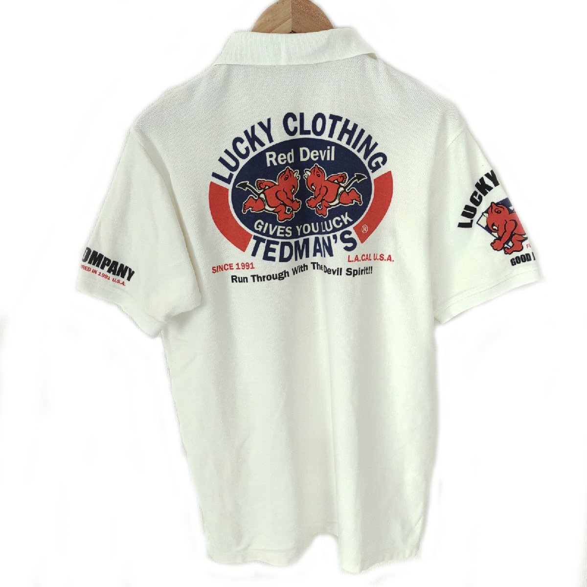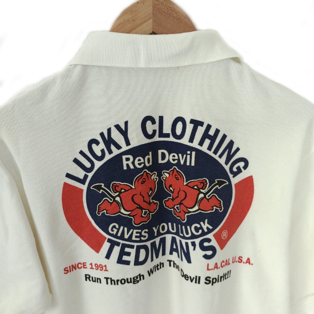 (^w^)b Ted Company テッドカンパニー 半袖 ハーフボタン ポロシャツ カットソー トップス スポーツ アメカジ デビル 悪魔 白 L O13584DD